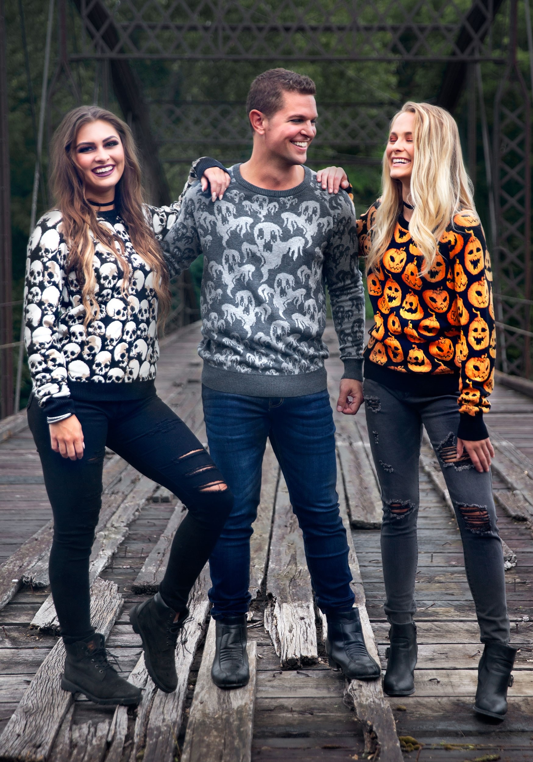 This pumpkin-tastic sweater showcases the beginning of the Jack O' Lantern retaliation on mankind... or maybe it's a just an awesome way to get into the Halloween mood this year! It's made out of a comfy cotton and acrylic blend, which makes it a cozy way to keep warm this fall. The Jack O' Lantern is a knit-in, all-over pattern that has plenty of pumpkin faces on the exterior. If you feel like skipping the costume this year, then this exclusive sweater might just be the sort of apparel that you've been looking for. And if you bump into a raging pack of wild pumpkins, they'll know you're cool when you're wearing this festive Halloween sweater.