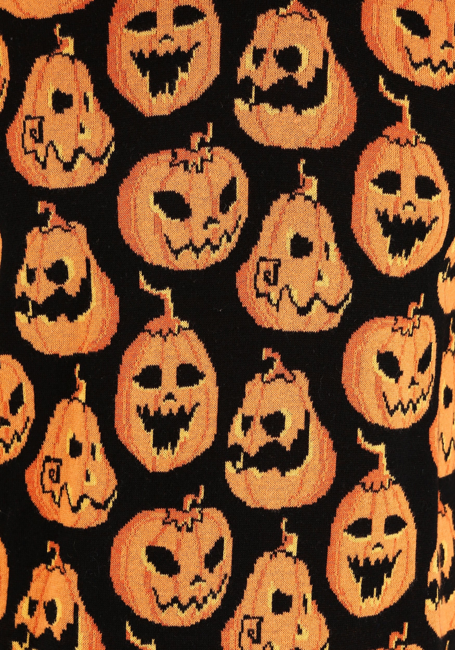 Jack O' Lanterns have had enough! That's right, they're completely fed up! For years, we've been using their fallen, orange pumpkin brethren to suit our human needs. We have put them in Thanksgiving pies, used them to flavor our fancy coffee drinks, and we've even turned them into candles, shampoo, and other everyday items. Well, the pumpkins are fighting back! They're ready to avenge their fallen pumpkin-kind. The frenzy has begun and it all starts with this Pumpkin Frenzy Halloween Sweater!