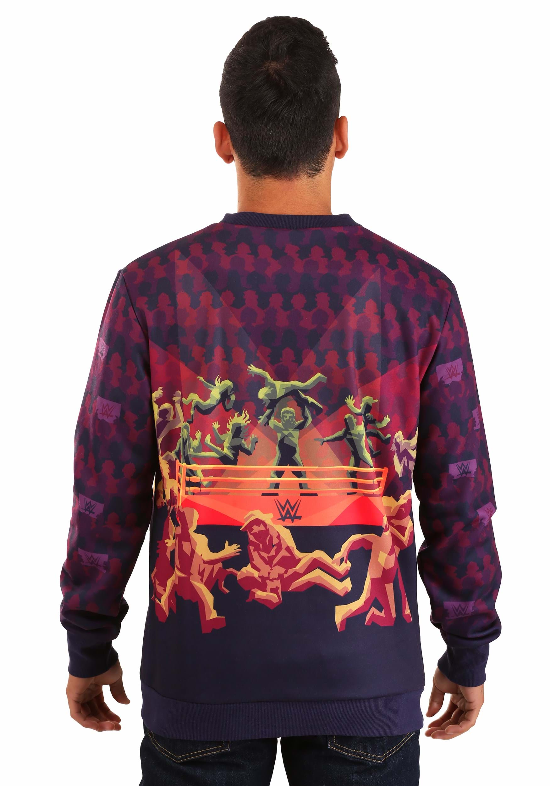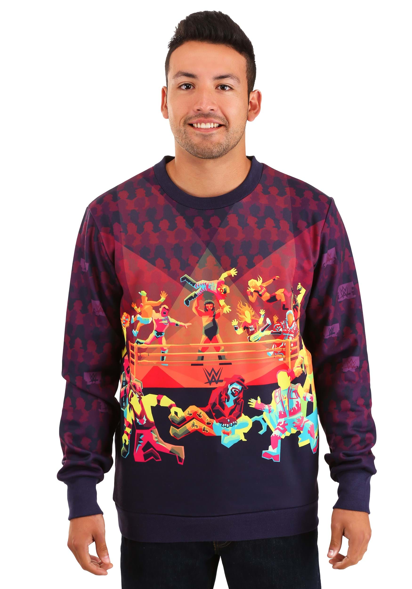 Lovers gonna love. Players gonna play. Haters gonna hate. And wrestlers? Well, they're gonna rumble. You can't stop them—it's in their DNA. If you put a whole mess of wrestlers inside of a ring together, they just have to battle it out until only one of them remains standing in the ring. Now, our expert designers have captured the chaotic nature of a WWE battle royale with this Radical Rumble WWE Sweater.