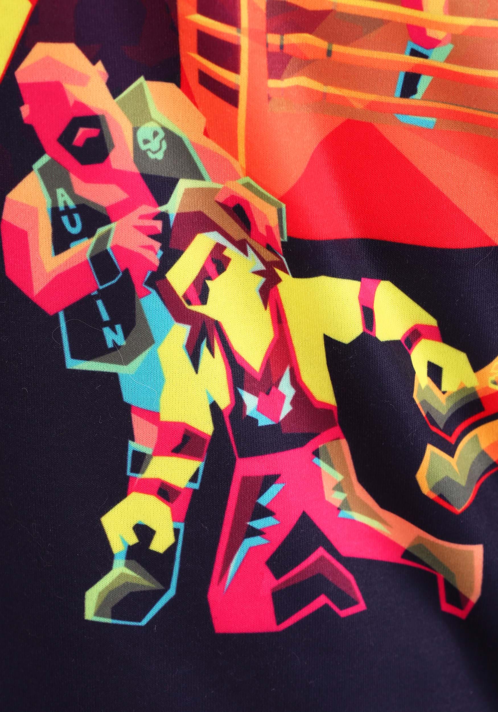 This adult sweater is part of our ugly sweaters line and is officially licensed from the WWE. The design features an impressive roster—only the most well-seasoned wrestling fans will be able to name each and every wrestler on the sweater! (For the record, the complete list is as follows: Mankind, John Cena, The Rock, Andre the Giant, Macho Man, Becky Lynch, Rowdy Ronda Rousey, Ric Flair, Kane, The Ultimate Warrior, Stone Cold Steve Austin, Bret Hart, The Undertaker, Shawn Michaels, and Big E from The New Day.) The sweater has an 80s inspired neon color scheme, perfect for fans both young and old. The cozy design also helps keep you warm on those frosty fall days, so you can keep comfy while you revel in the mayhem of the battle royale!