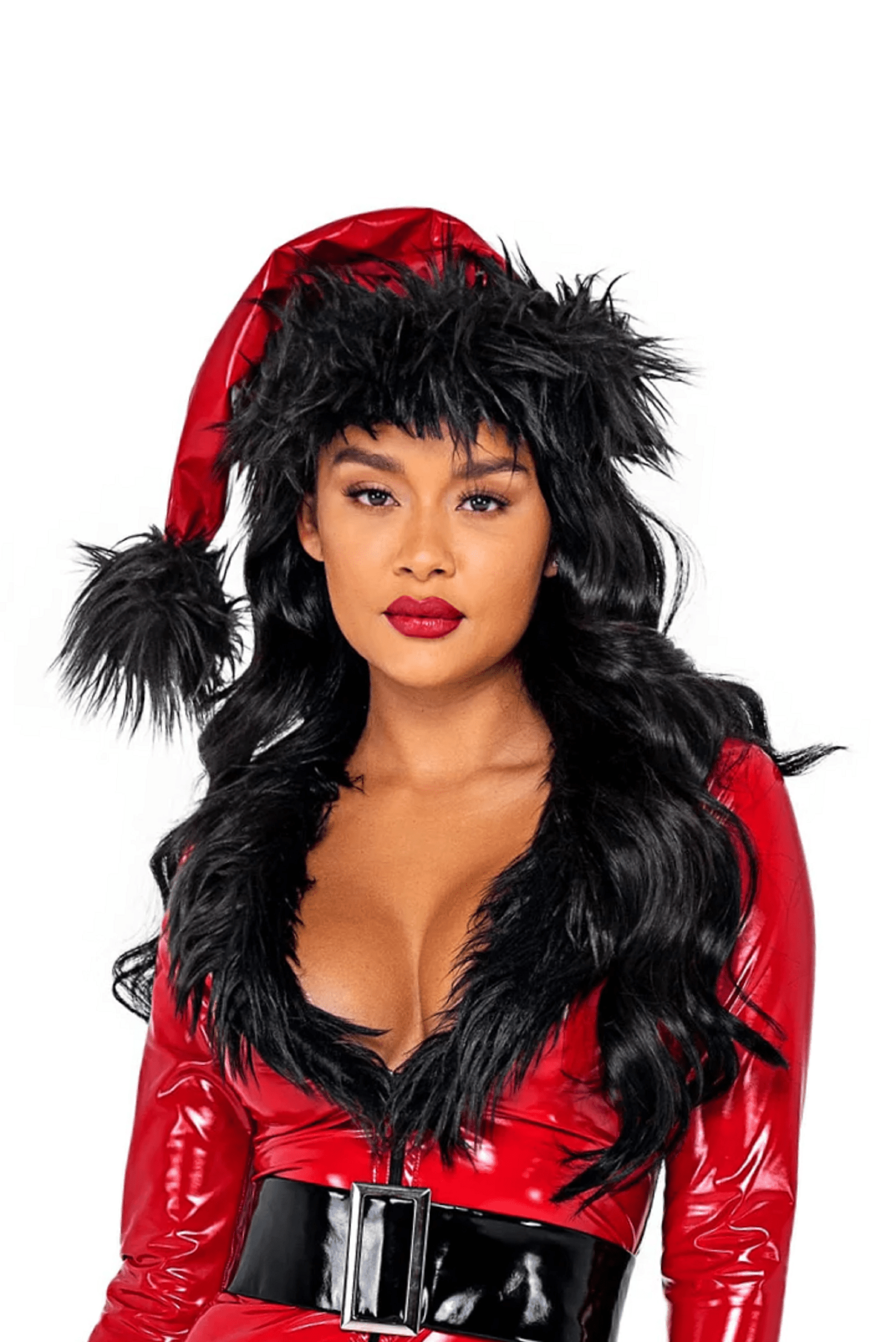 This is a Red Faux Patent with Black Faux Fur Christmas Hat.