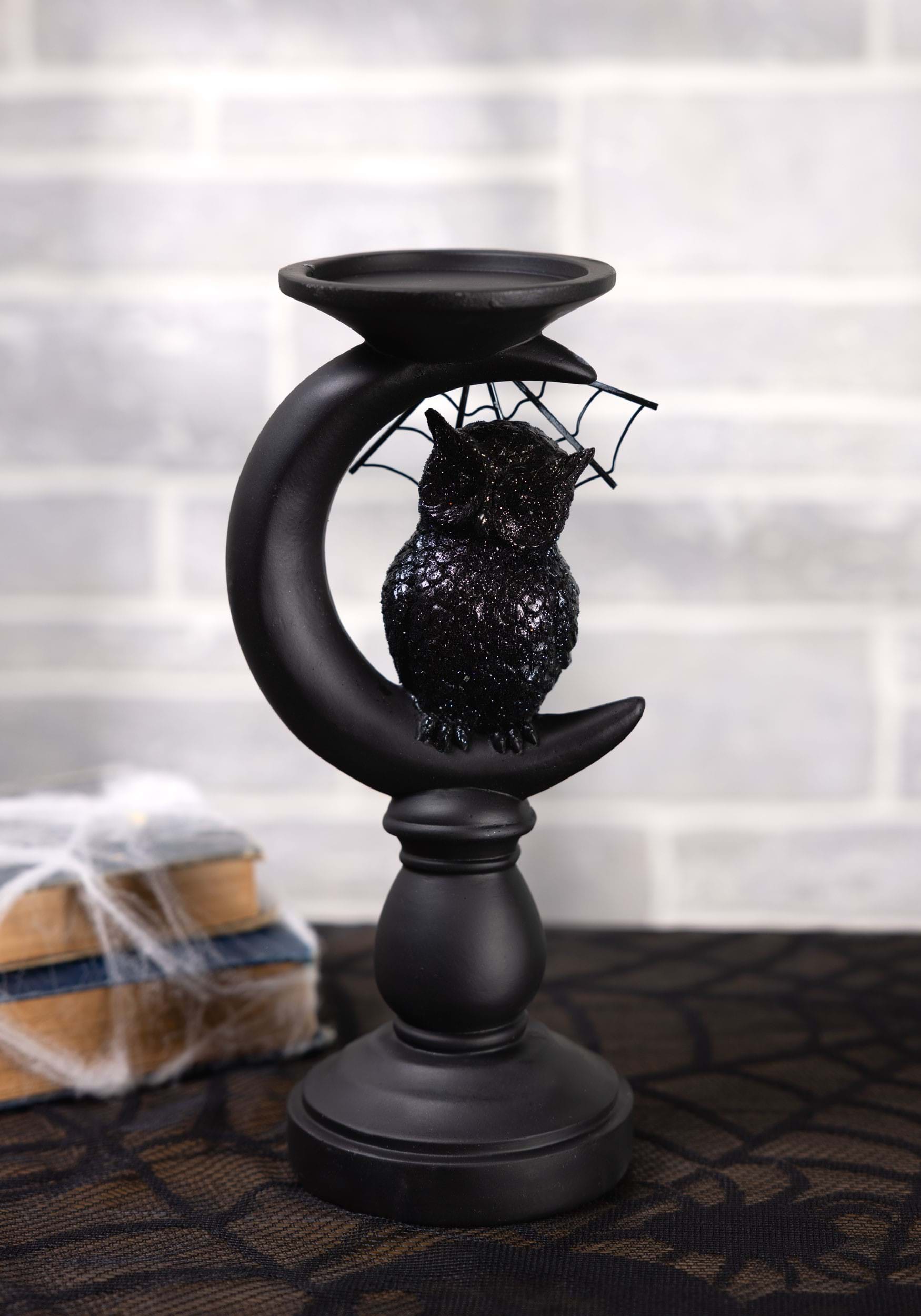 This is a Set of 3 Matte Black Halloween Candleholders.