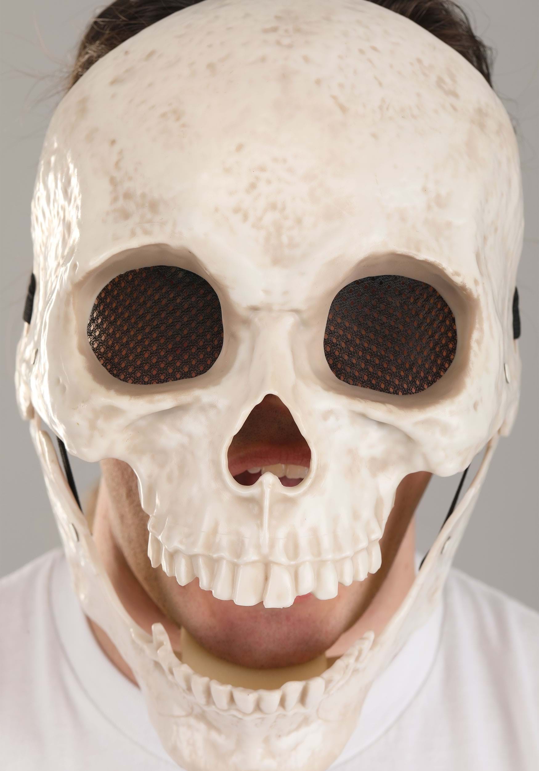 Wear this exclusive Shiny Skull Mouth Mover Mask by itself or with a full skeleton costume if you want your Halloween outfit to be unforgettably scary! The molded mask resembles a weathered white skull and has eye and nose holes so that you can see and breathe comfortably. The hinged jaw moves when you move your mouth!