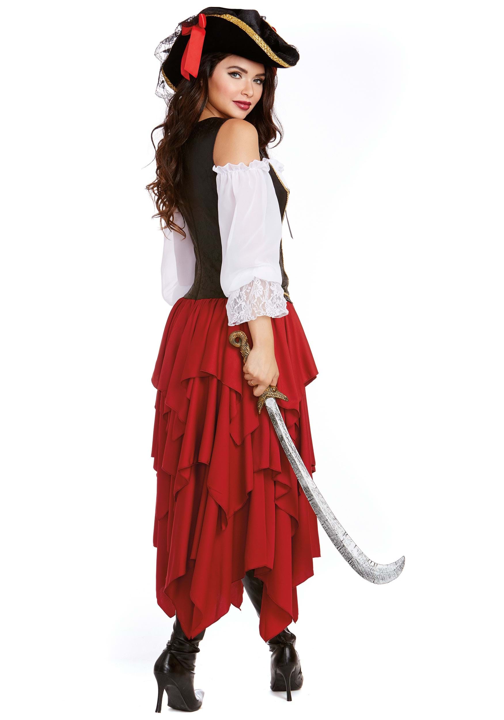 This costume lets you live out your wild, seafaring ventures. Wanting to make this look your own? This costume can be completed with a captain's hat and knee-high boots for a wild buccaneer ensemble!