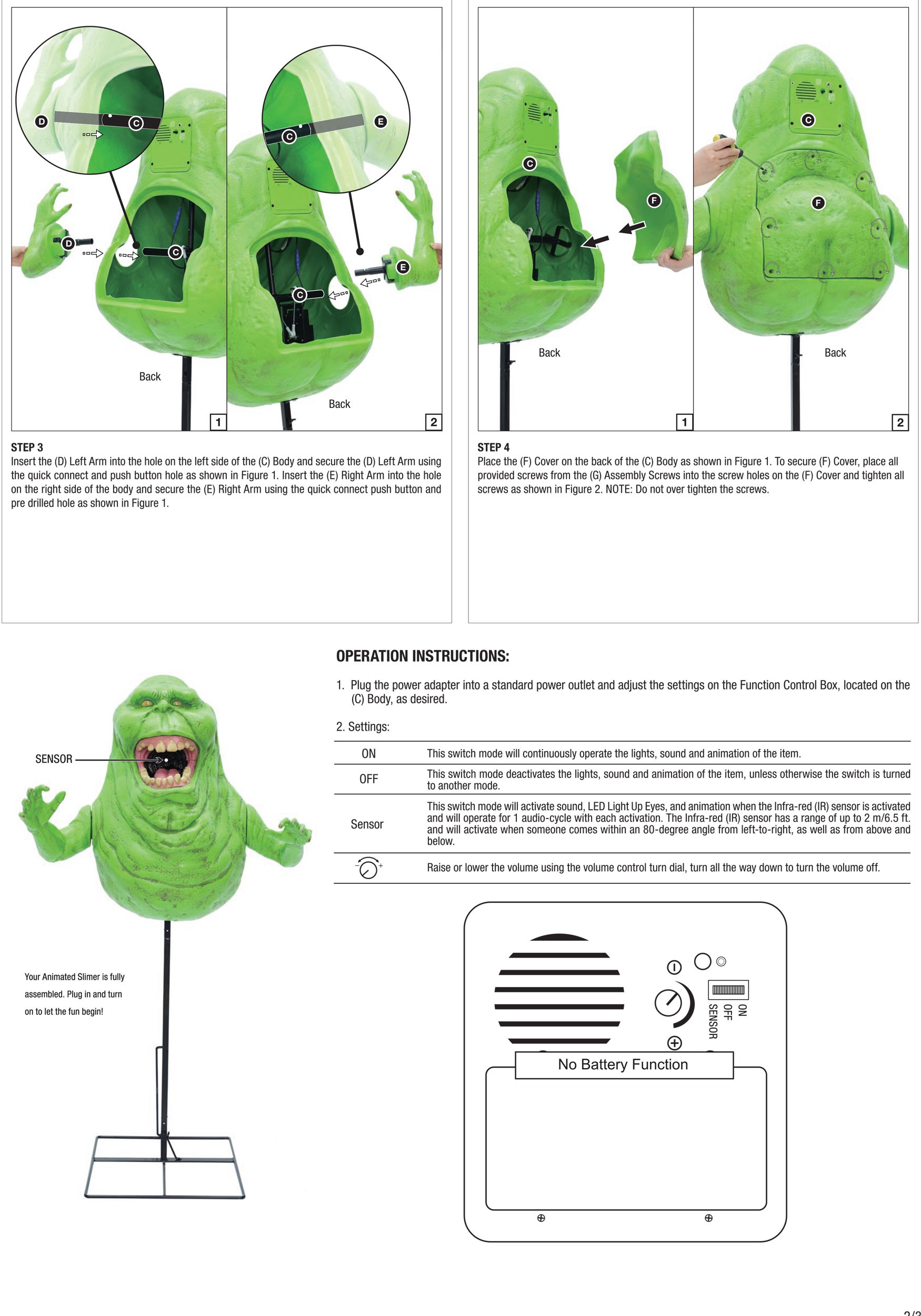 - Arms move up and down, eyes light up, spooky Slimer noises