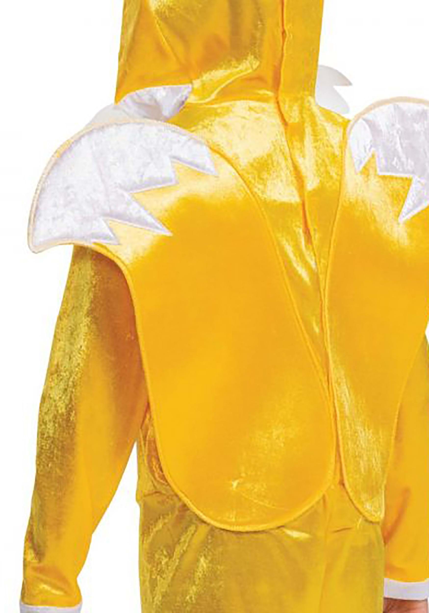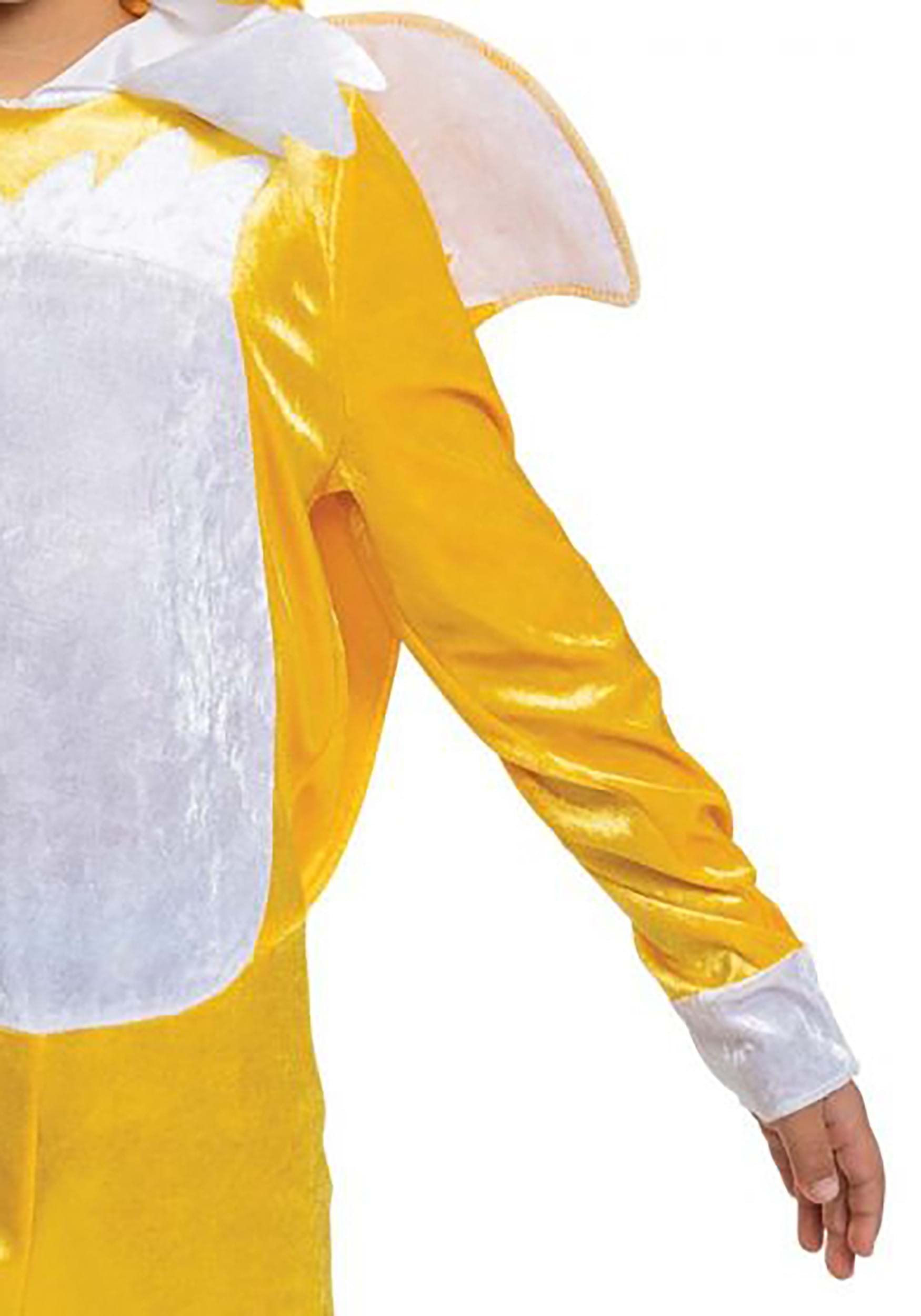 This officially licensed costume for kids is the easiest way for any child to turn into Tails! The costume comes with a yellow jumpsuit designed to look just like the character from the Sonic the Hedgehog 2 movie. The suit has a white patch on the belly, and it even has a pair of tails attached to the back. Just flip up the hood, and the transformation is complete! The hood has Tails' big eyes in front and fox ears on the sides.