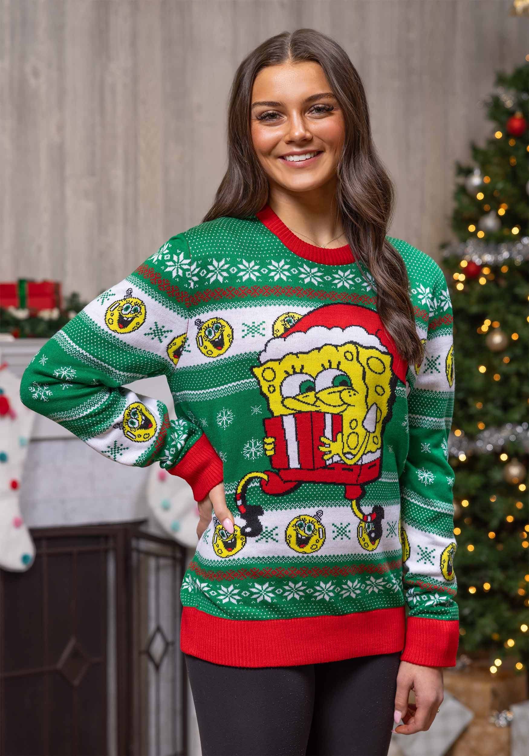 Spongebob Present Green Ugly Christmas Sweater for Adults
