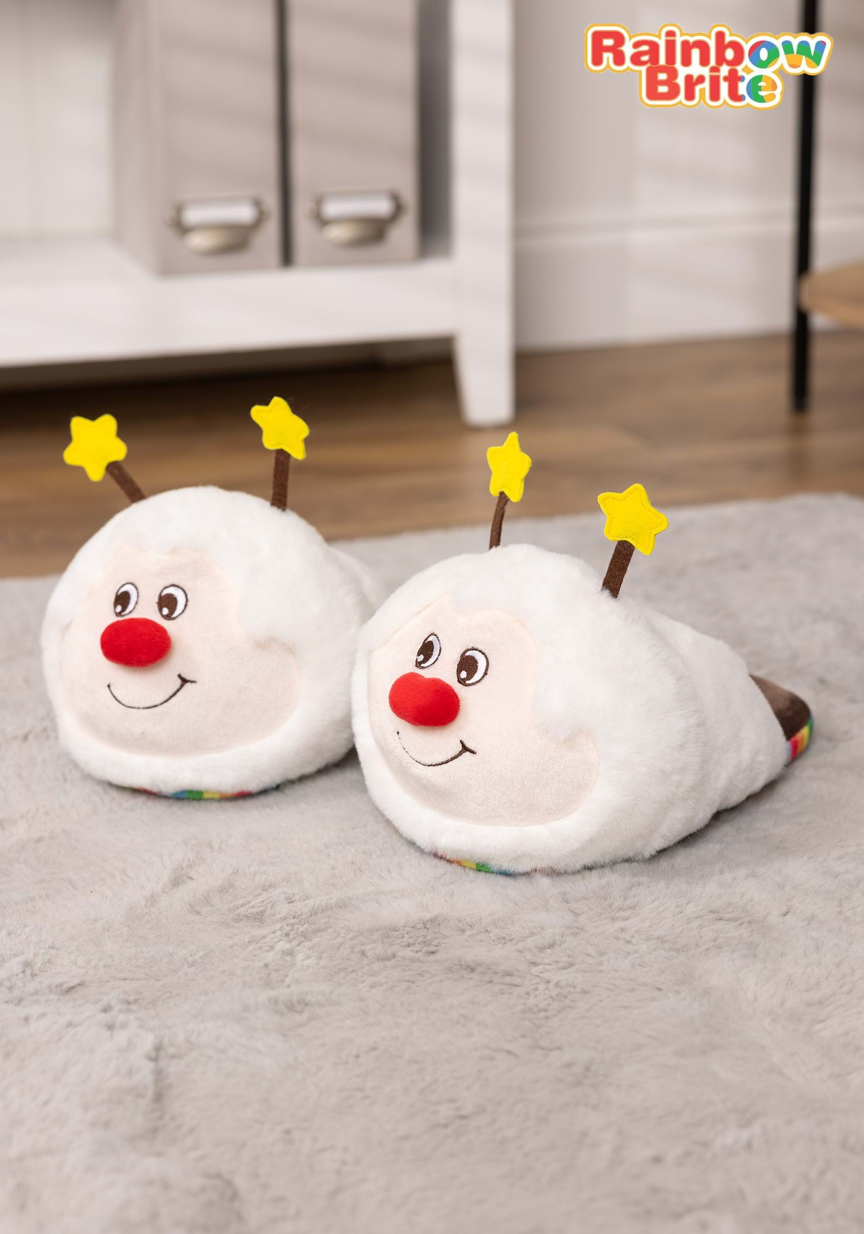 Straight from the creative minds of our Made By Us design team, these officially licensed Rainbow Brite Slippers feature the embroidered face of the lead Sprite of Rainbow Land. His bright smile and starry antennae decorate the front while plushy perfection is covered in a fuzzy exterior. With an anti-slip grip and foam-cushioned souls, too, they're functional as well as brightly beautiful! Add to your existing outfit or take a cozy twist on your Rainbow Brite costume!