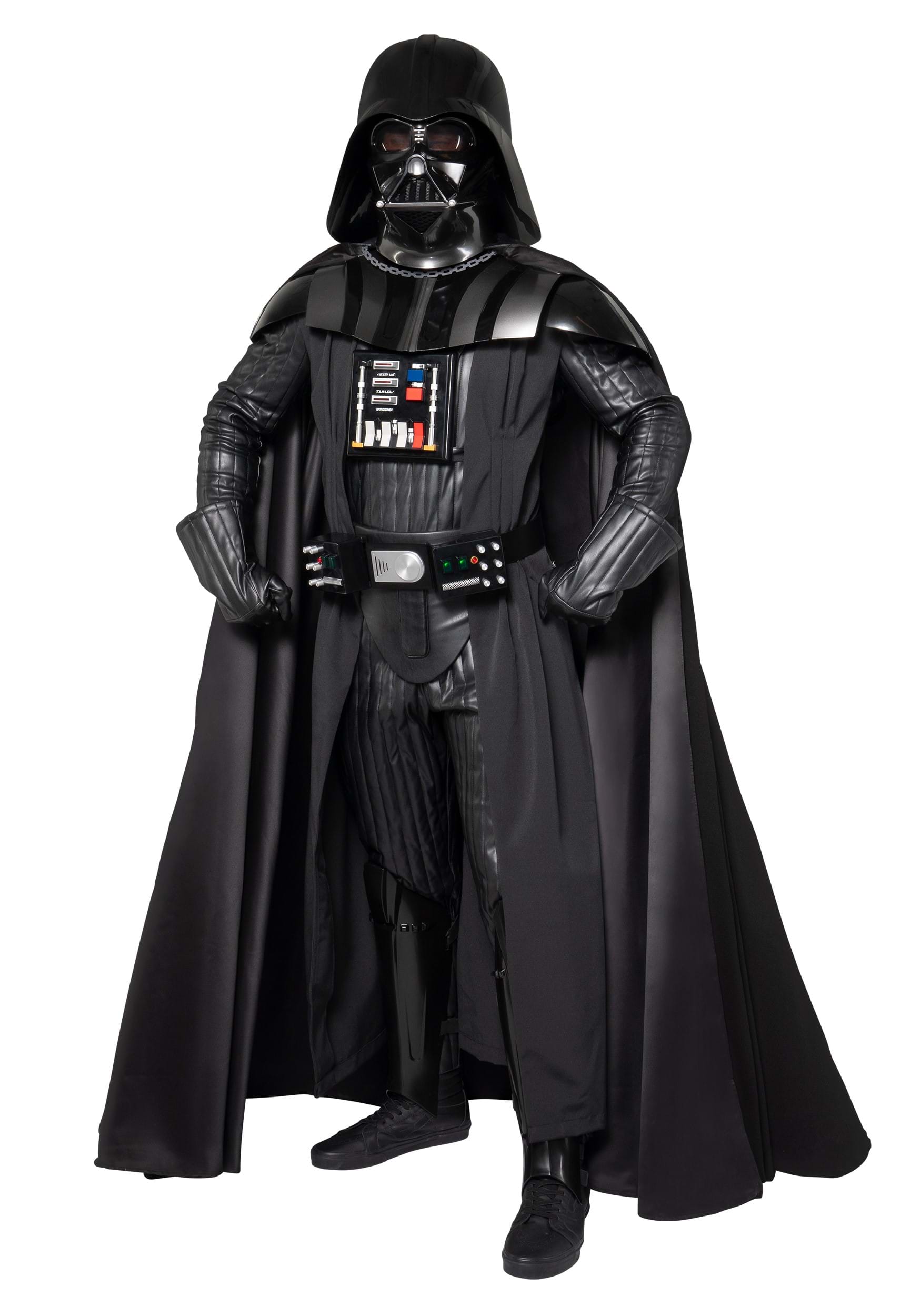 The suit features vertical texturing, capturing the look and feel of Vader's iconic armor. Layering the tunic and cape over top gives you that sweeping, dark silhouette that's unmistakably Sith. The chest box is worn with a strap harness and delivers Darth Vader's chilling, mechanical breathing sound. And the belt? It lights up for added visual effects, letting you seem to be part cybernetic without needing the Emperor's engineers.