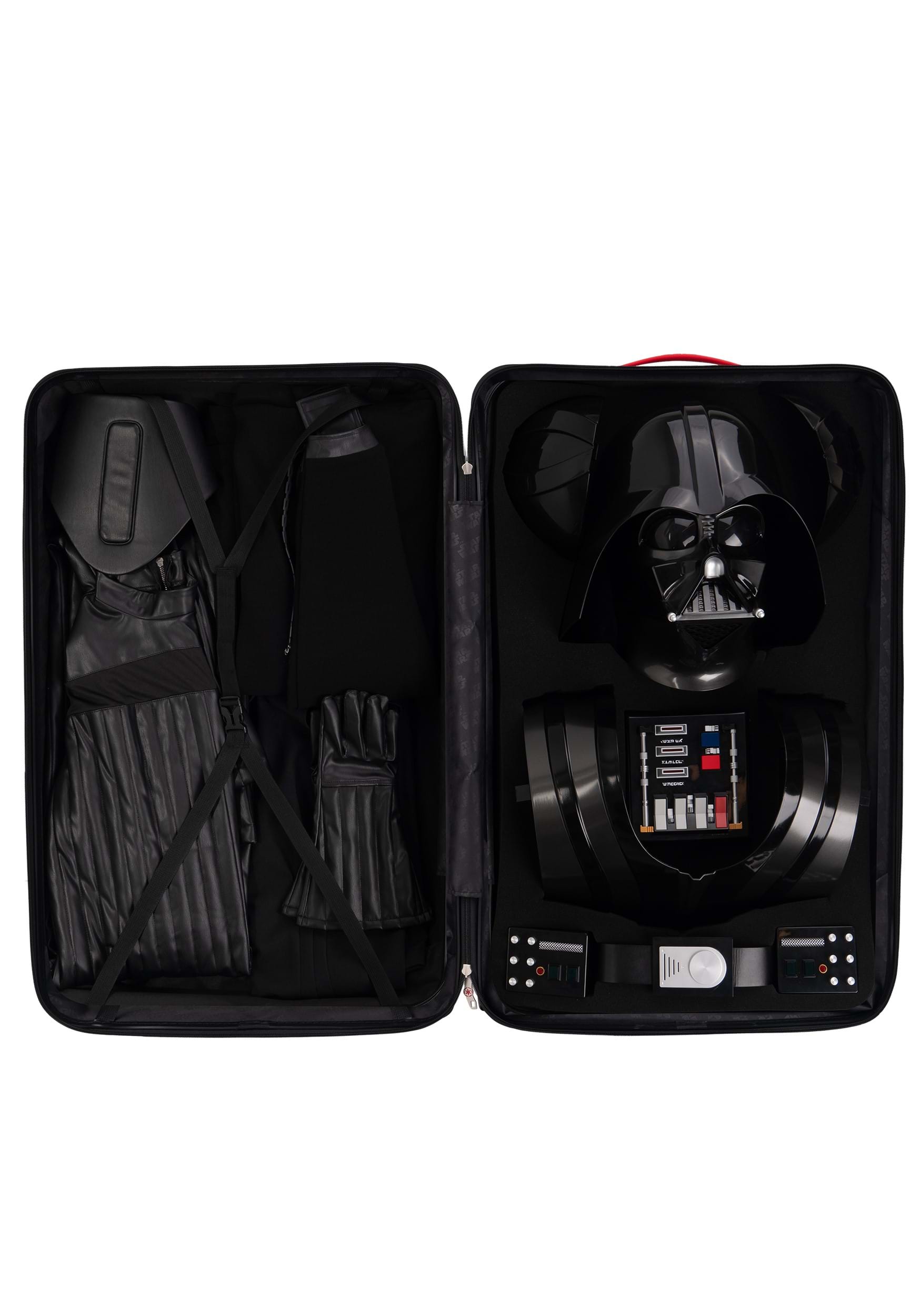 For the ultimate transformation, the armor attachments bulk up your chest, shoulders, and forearms and the full helmet comes in two pieces with an adjustable lining and lock mechanism, ensuring a perfect fit. It's designed for full cosplay immersion, allowing you to feel the weight of the Dark Side. Everything comes in a hard storage case, featuring Darth Vader's iconic helmet graphic, to keep your costume safe and ready; it's a complete Vader cosplay experience in a box!