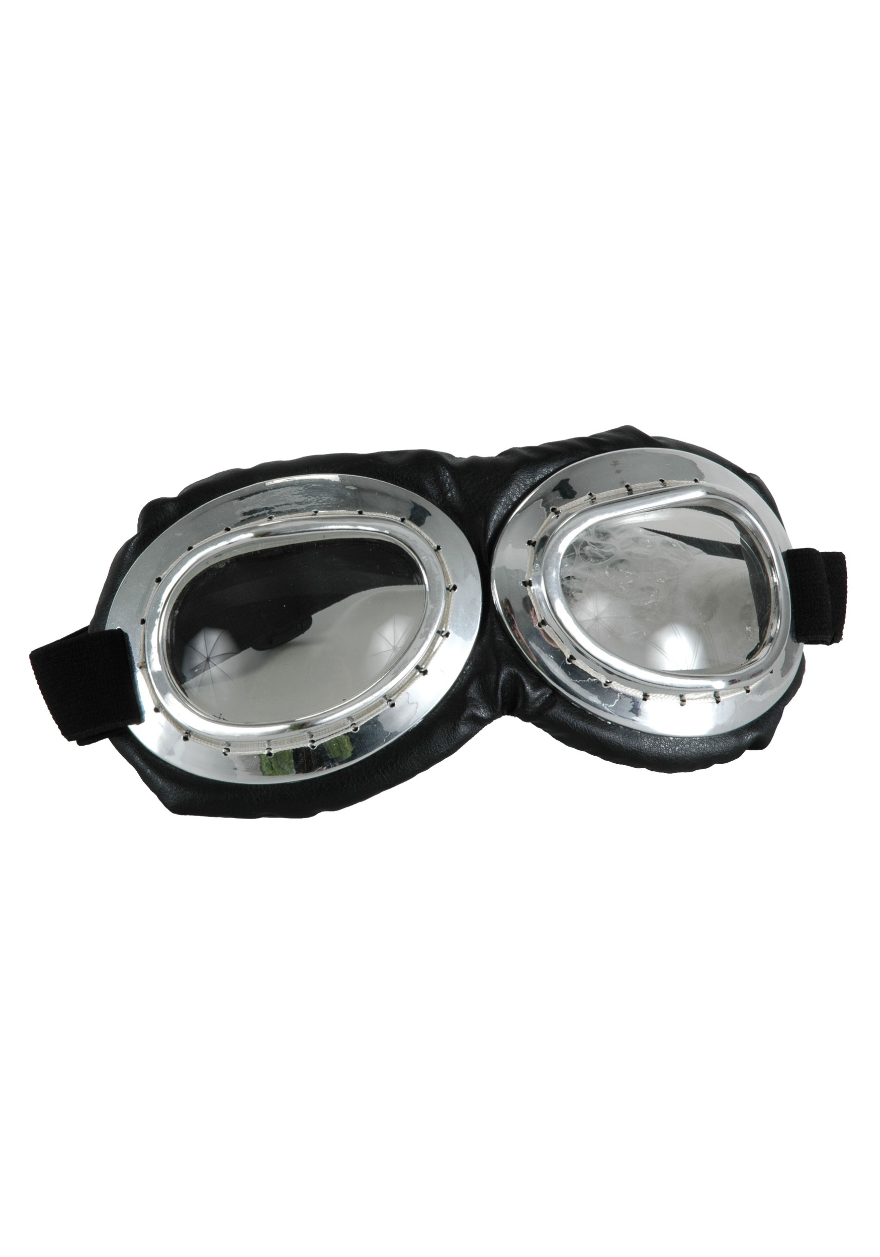 - Silver-tone molded plastic goggle frames have clear plastic lenses