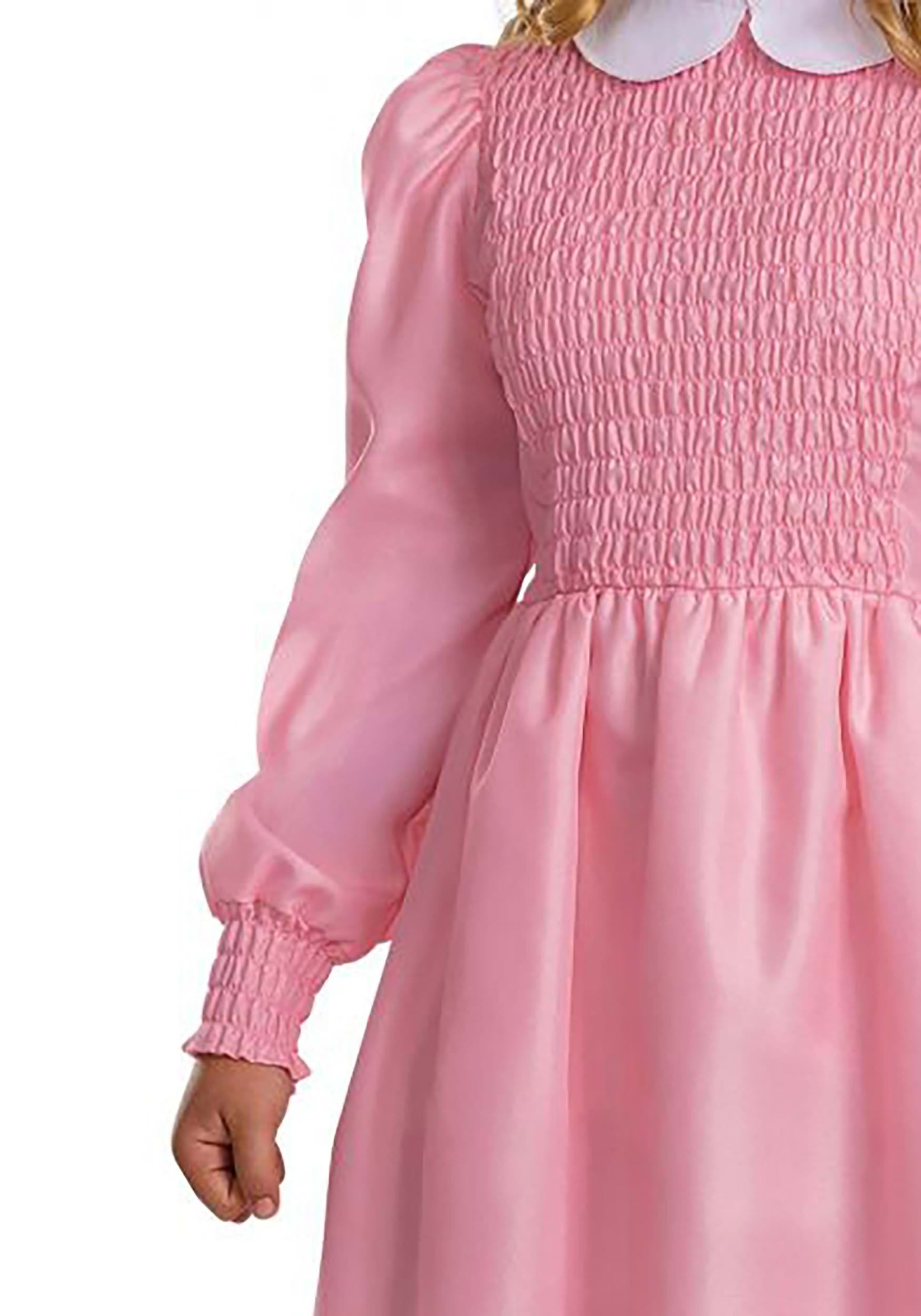 Transform into Stranger Things style with this officially licensed Classic Pink Dress Eleven costume. This simple garb has more than meets the eye thanks to its simple structure and easy transformation. The slip-on dress has a white collar and long puffy sleeves. It fastens with a zipper in the back for a secure fit and gives just enough of a twirl factor in the skirt that anyone will feel just a bit more powerful when they take a spin around the Upside Down. Naturally, this is a look based on a story set in the '80s, so we can't ignore a bit of period-appropriate accessorizing. We've included the knee-high striped socks, too. We're not saying they'll give you Eleven's superpowers, but they'll sure make any Demogorgon think twice about entering a foot race with you! Add one of our blonde wigs to complete your outfit and you'll be ready to take part in any Stranger Things scene.