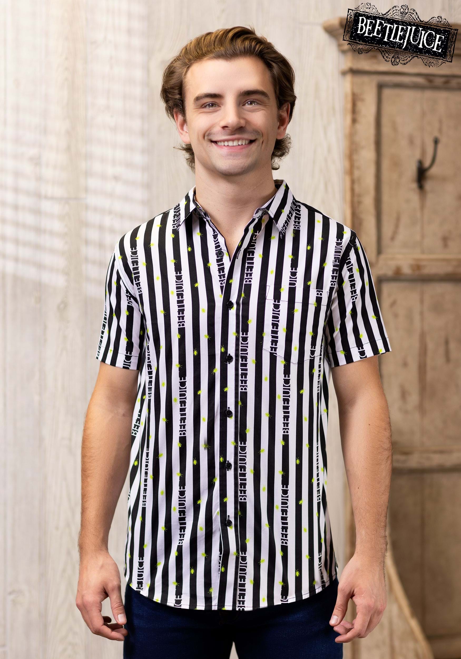 This is an Adult Striped Logo Beetlejuice Shirt.