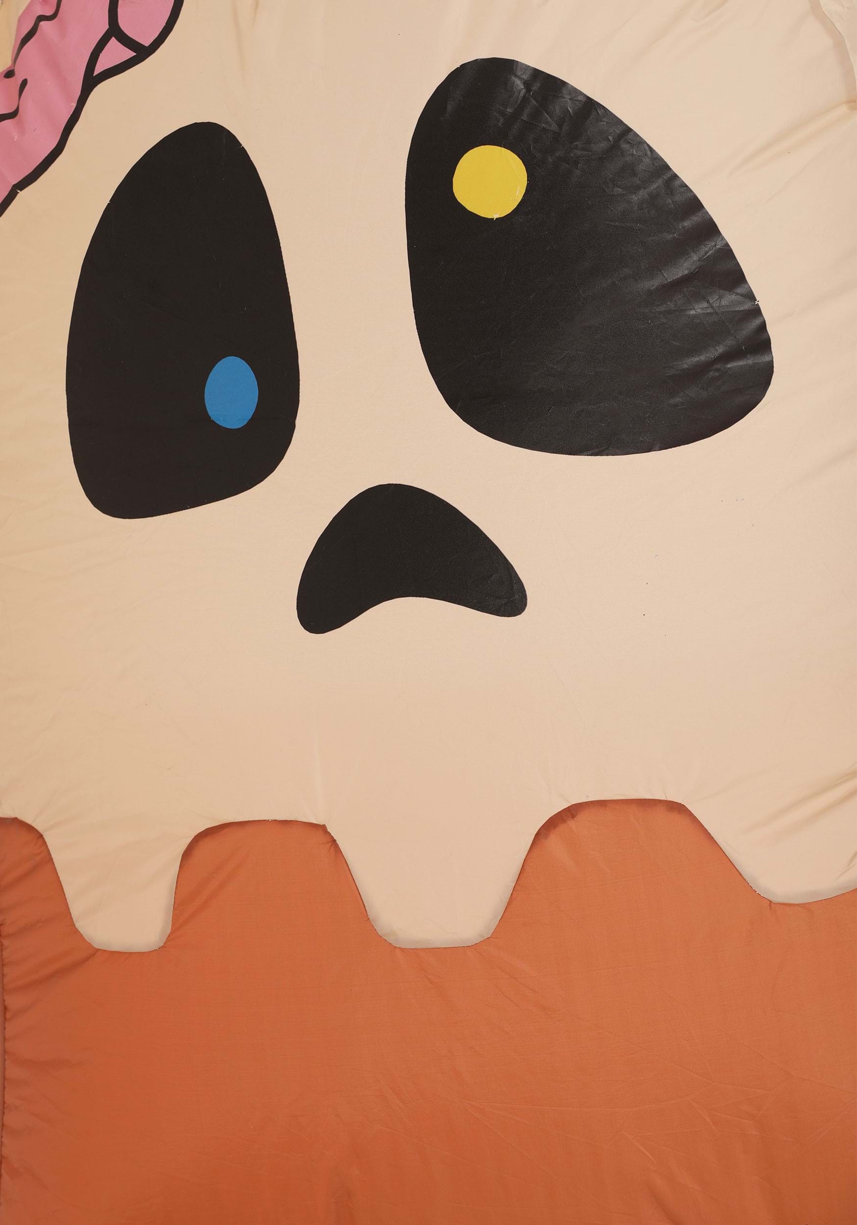 We all scream for this exclusive Sweet Shrieks Killer Clown Ice Cream Truck Inflatable Halloween Decoration! Made of sturdy polyester windbreaker fabric, the decoration inflates to an impressive eight feet tall and includes tether cords. It's shaped like an ice cream truck with a worried-looking ice cream bar topper. A maniacally grinning clown protrudes from one window holding a treat cone.