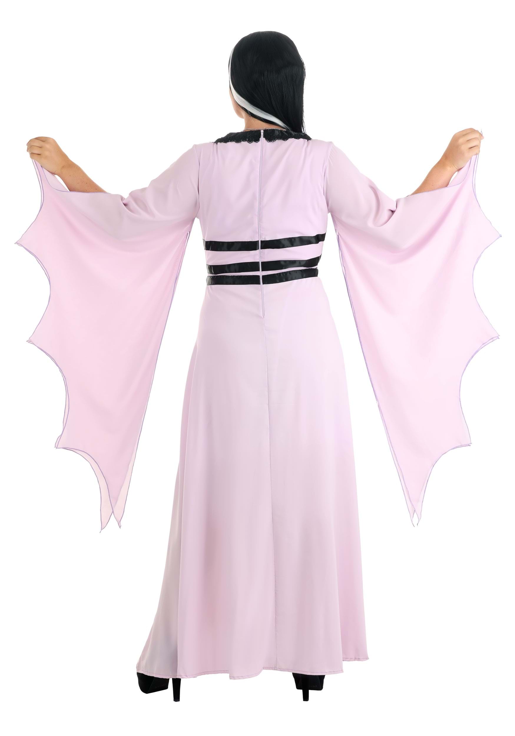 The Munsters Lily Costume helps you transform into the classic television character! The costume starts with a dress that's inspired by her outfit from the show. It features a square neckline and black satin accents in front and around the waist. Finally, the costume comes with a bat-shaped necklace to complete the look! Pair it up with our Lily Munster Wig (sold separately) and you'll be ready to play the role of your favorite Munsters character!