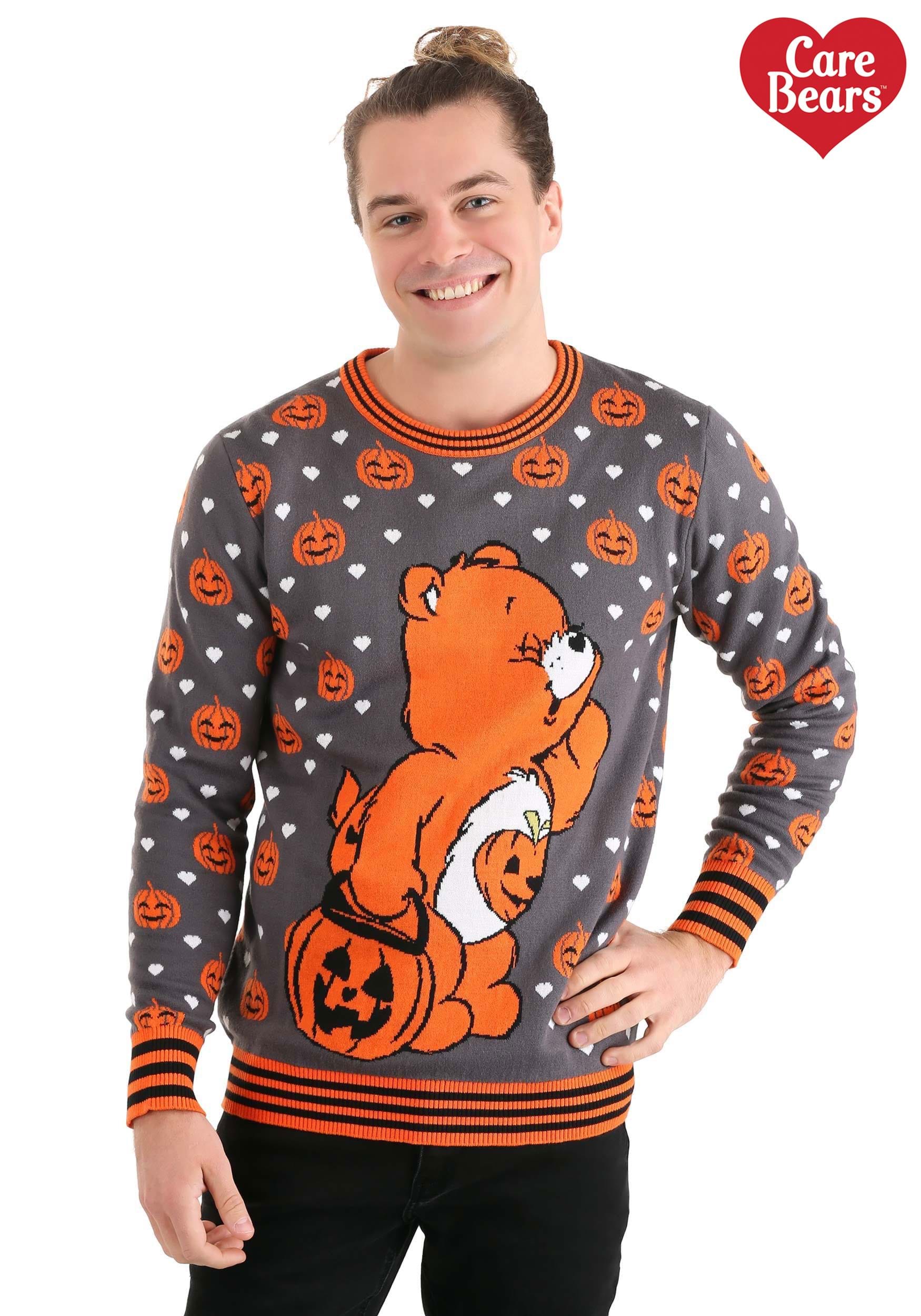 If you'd like to share the Halloween spirit all year long, you can't go wrong with this Care Bears Trick-or-Sweet Bear Halloween Sweater for adults. This chipper sweater offers an all-over print of grinning pumpkins and happy hearts, not to mention rib-knit cuffs and a neck and waistline trimmed with black and orange stripes. And you'll have a belly badge of your own in the form of Trick-or-Sweet Bear on the hunt for treats!