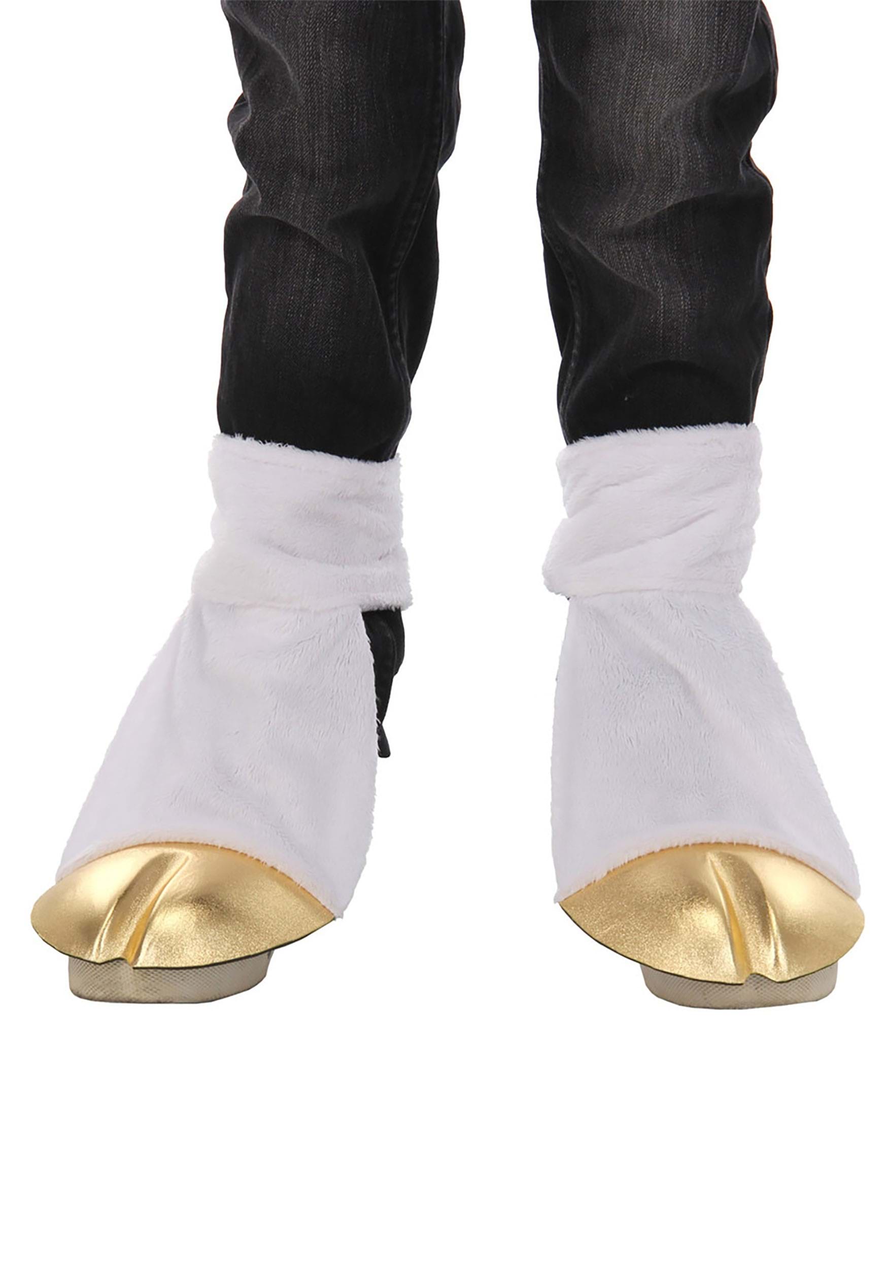 These golden hooves are the perfect accessory for your footwear! The golden hooves feature an equine groove, while the rest of the "ankle" is a soft white. The cuff fastens around the ankle, while the attacted elastic goes around your foot to keep the hoof firmly in place. You'll have no trouble walking in these hooves! As you know, unicorns have four golden hooves, not two. Looking for a neat solution to cover your human fingers? Check out our website to find the golden gloves that match this foot pair!