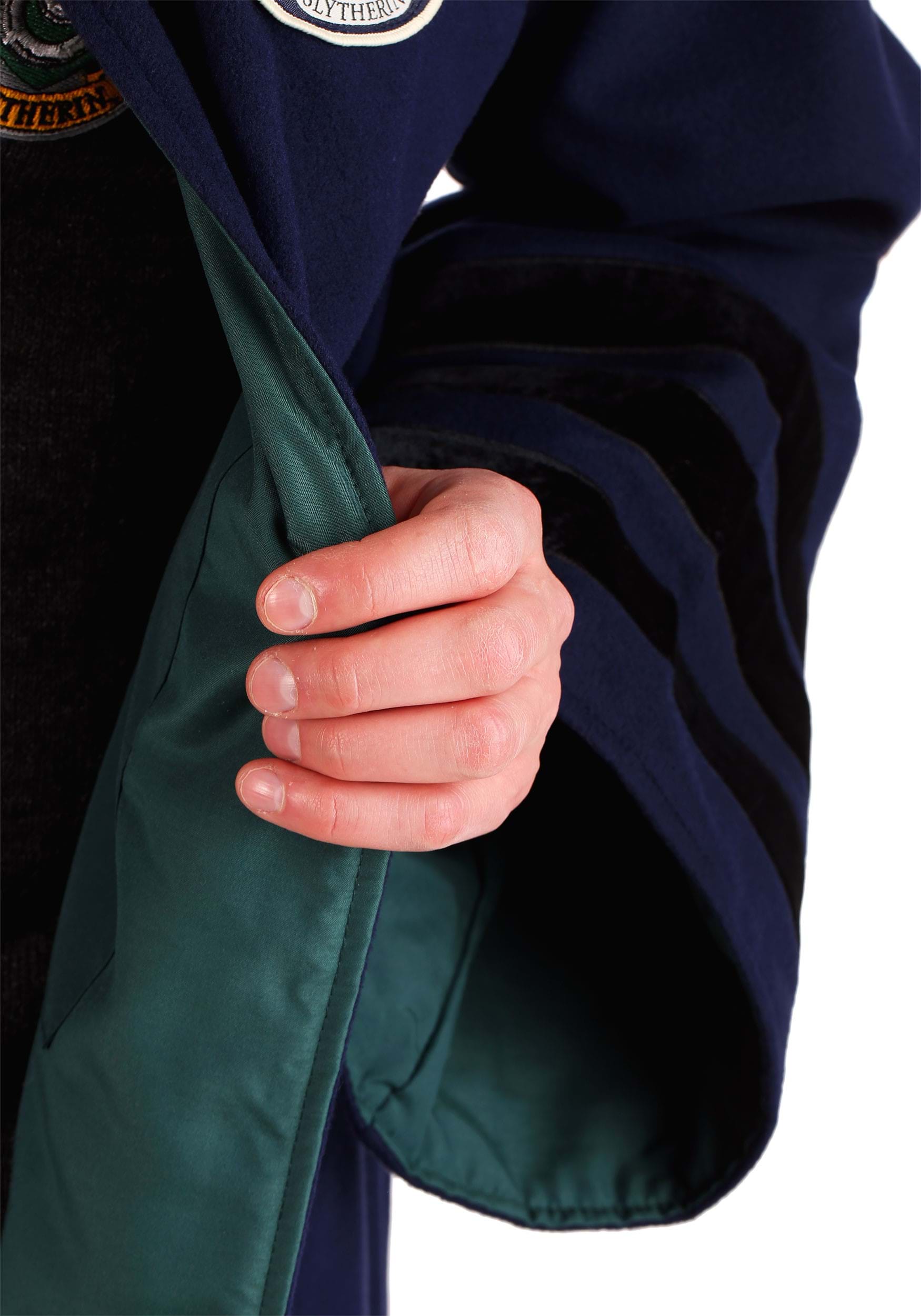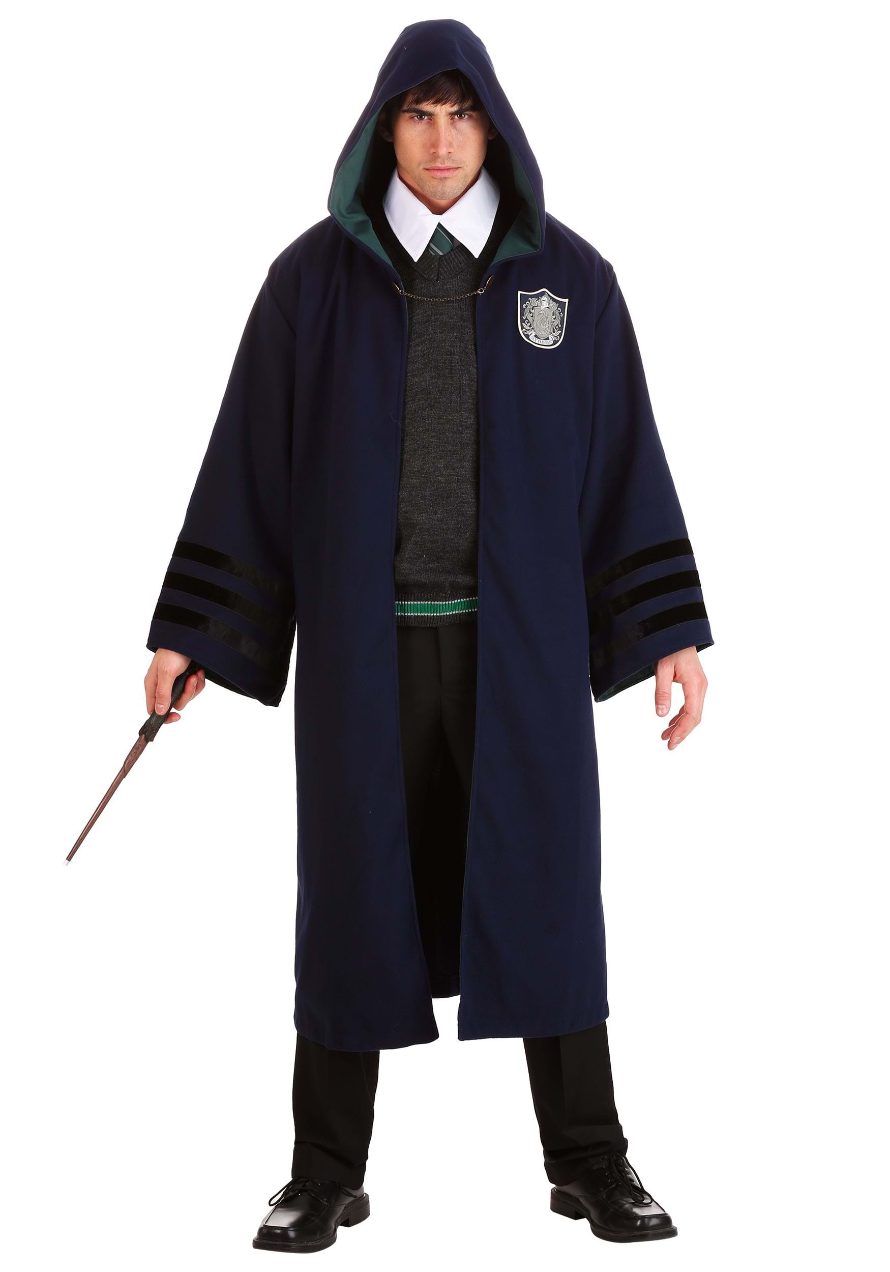 If you're interested in taking us up on the Butterbeer offer, then dress accordingly. The officially licensed vintage Harry Potter Hogwarts Slytherin robe is exactly what you need in order to achieve the swanky Slytherin appearance. There are few magical costumes that can transform you fully with nothing more than a single robe, but somehow that's just the ticket, here! The long robe features a Slytherin House Crest patch and a metal claw clasp. An attached hood in back completes the magical look. Now, no tricking the Slytherins by wearing a robe outside your House! That would just be wicked!