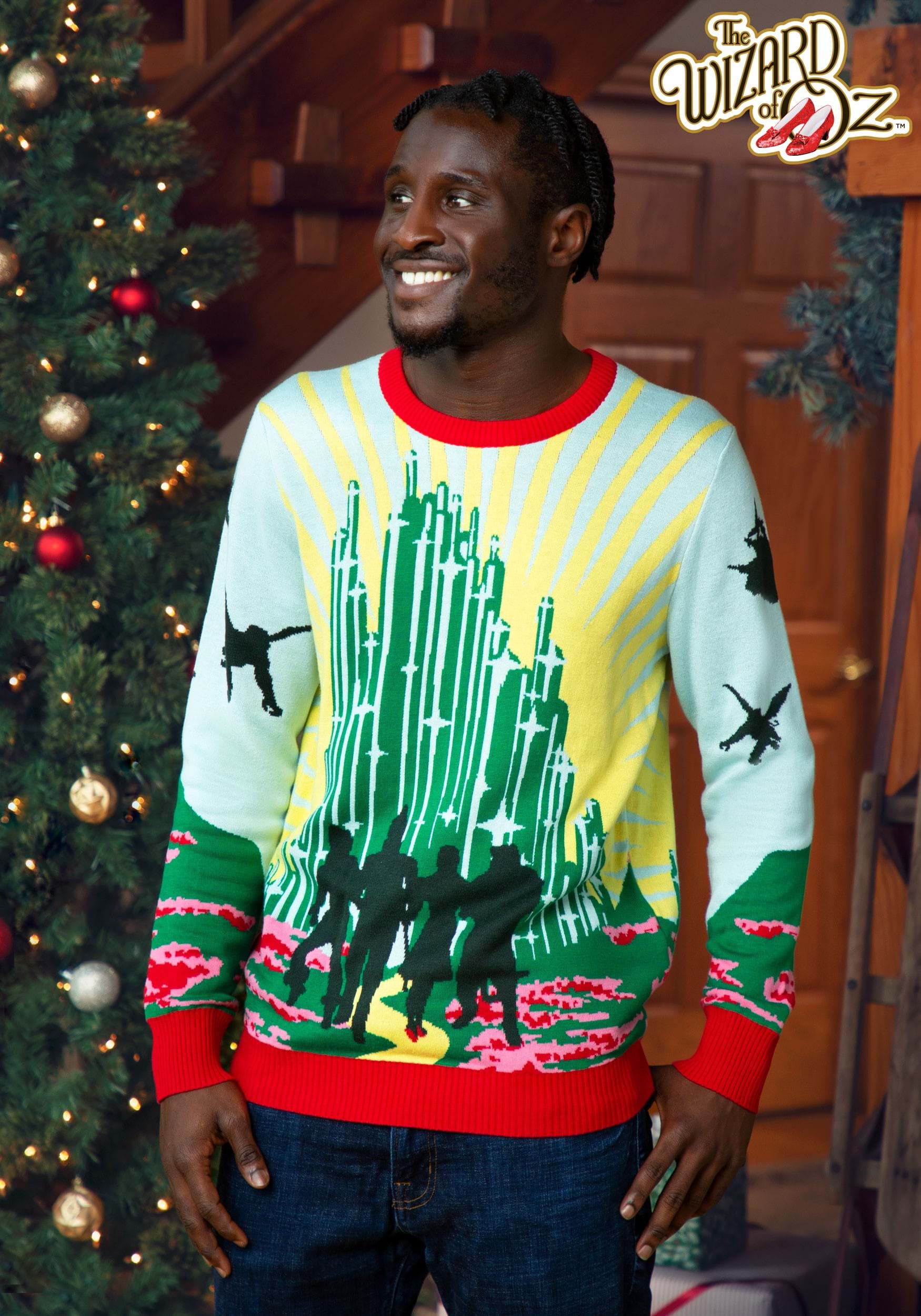 Designed by our in-house creative team, this officially-licensed Wizard of Oz sweater is sure to enchant any wardrobe. While the red and green design is a fun twist on the "ugly Christmas sweater" theme, the evergreen Emerald City has a place in your yearlong wardrobe. Purchase this exclusive look for the Wizard of Oz enthusiast on your Christmas list or buy it for yourself. Eitherway, you'll find that this sweater puts that special Oz skip in your step!