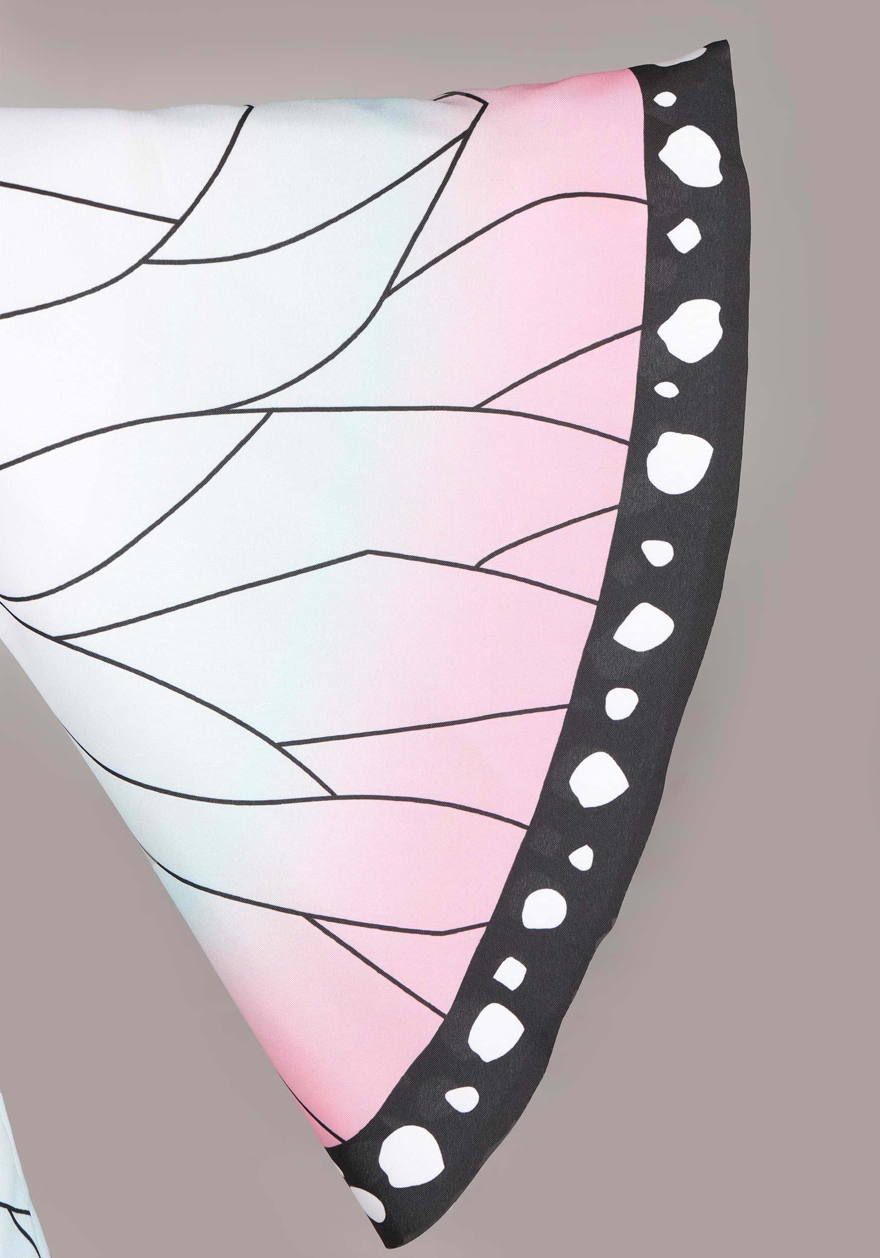 - All-over print of butterfly wing veins over ombre gradient from pink to pale green to white