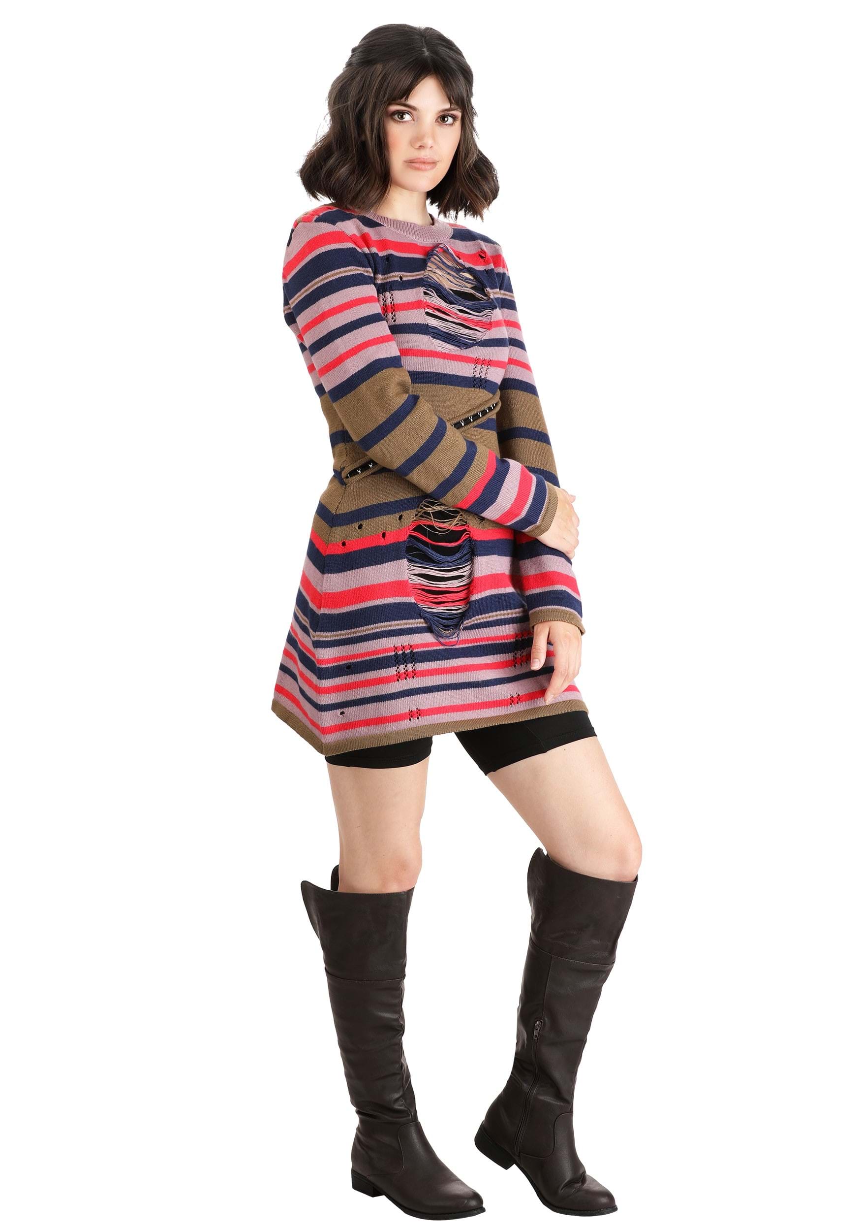 Women's Astrid Striped Distressed Sweater Dress with Biker Shorts