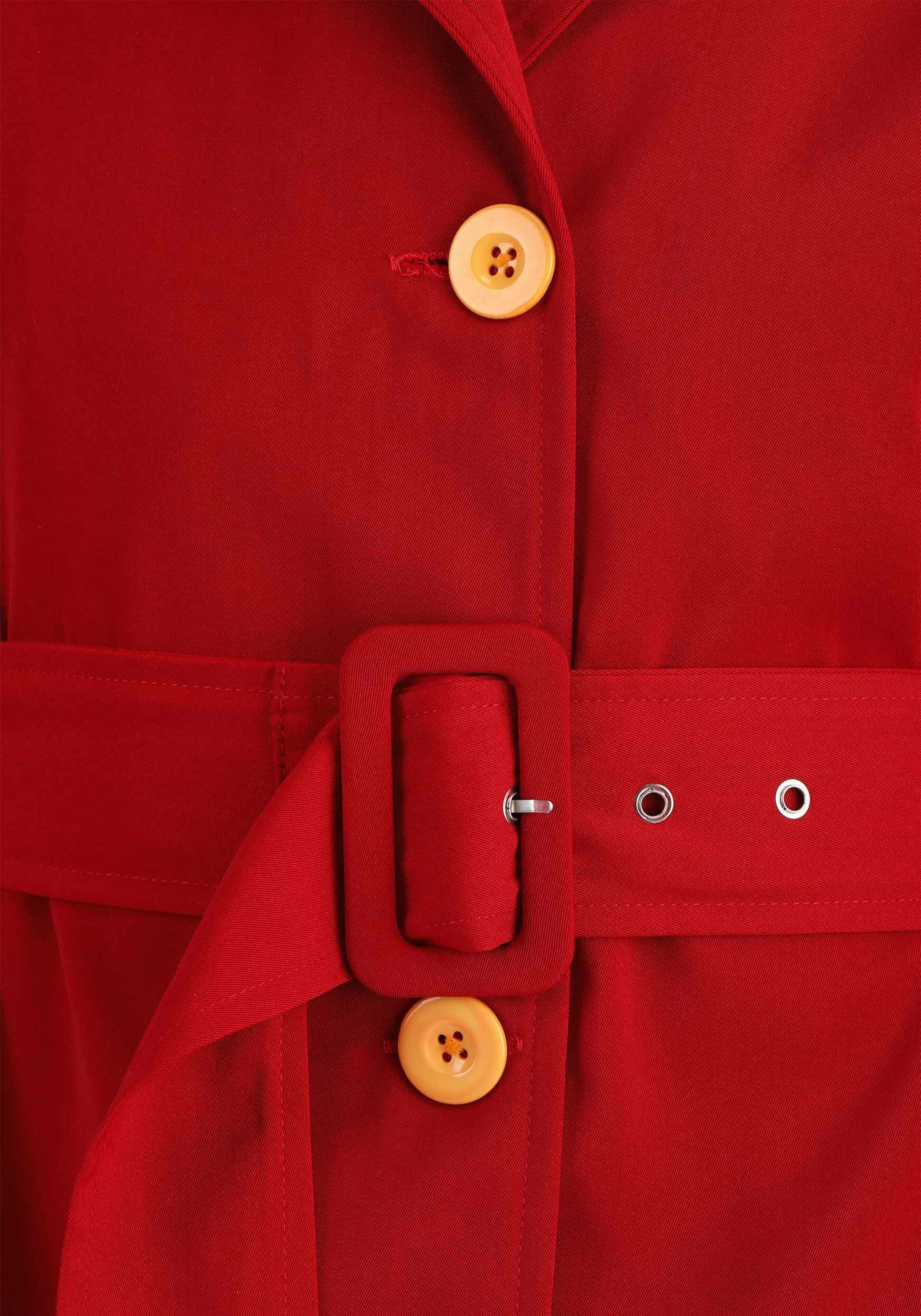 - Belt is same fabric as coat, with fabric-covered buckle and metal eyelets