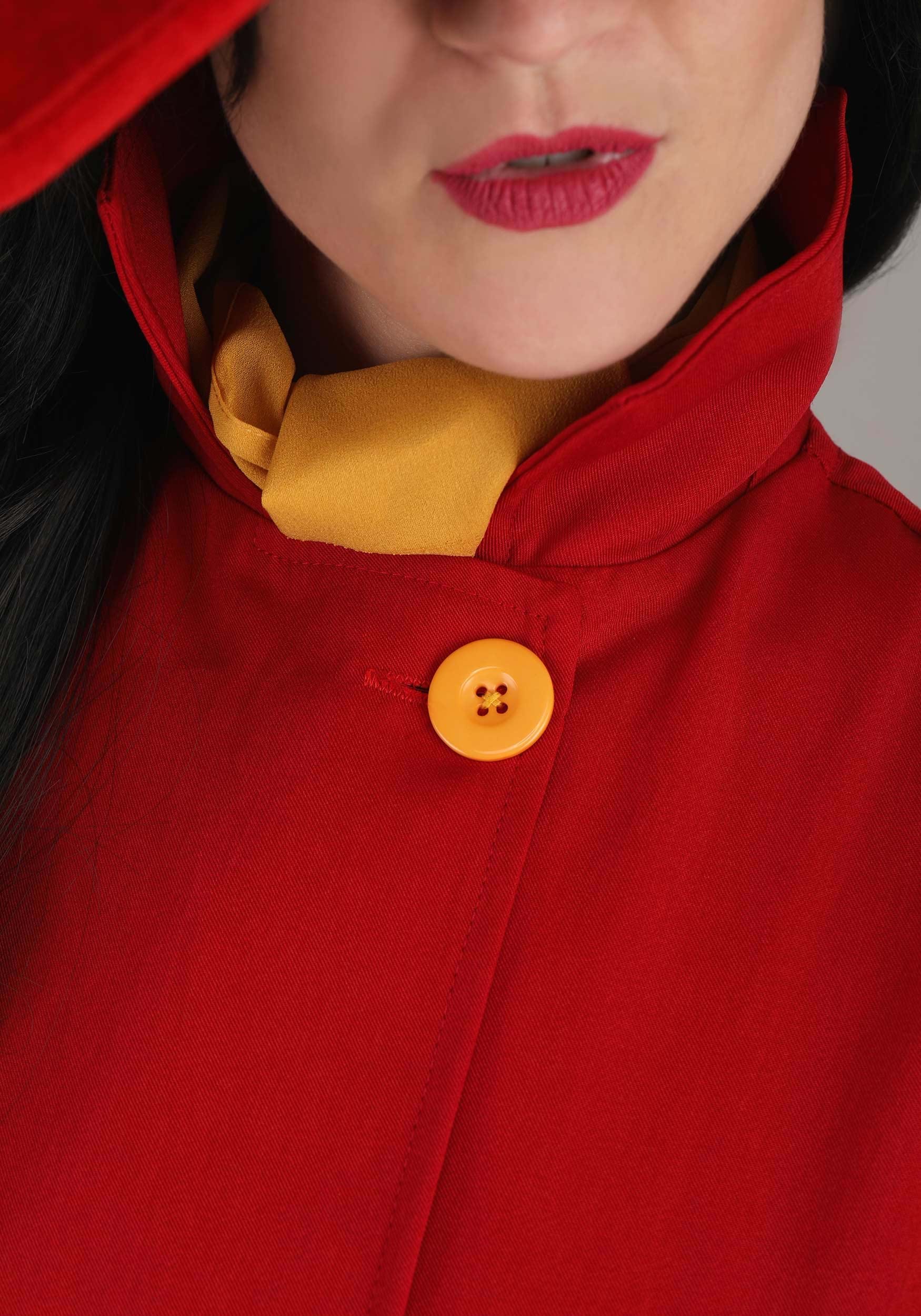 Pull the wool over the police's eyes and look fantastic doing it when you wear your exclusive Authentic Carmen Sandiego Costume for Women! The outfit includes a dress-style trench coat made of rich red gabardine. Its off-center yellow buttons, poppable collar, shoulder epaulets, and wide belt make you as stylish as you are sneaky. The faux leather gloves will keep you from leaving fingerprints at any of your crime scenes and the chiffon scarf can be tied as desired. The velour hat has a wire concealed in its brim so that you can pose it however you like.