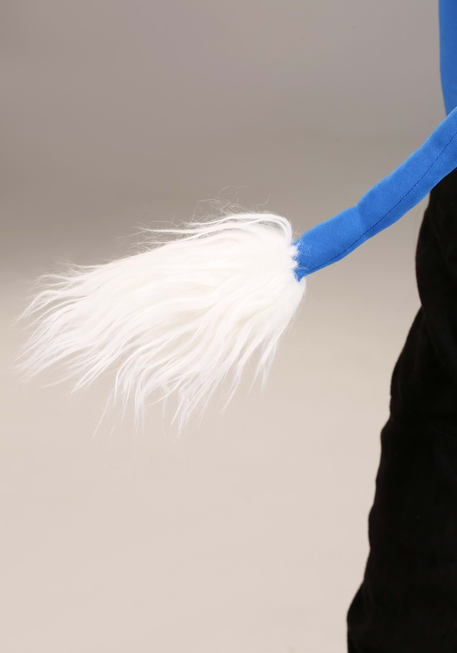 - Stuffed tail tipped with faux fur is sewn to back of jumpsuit