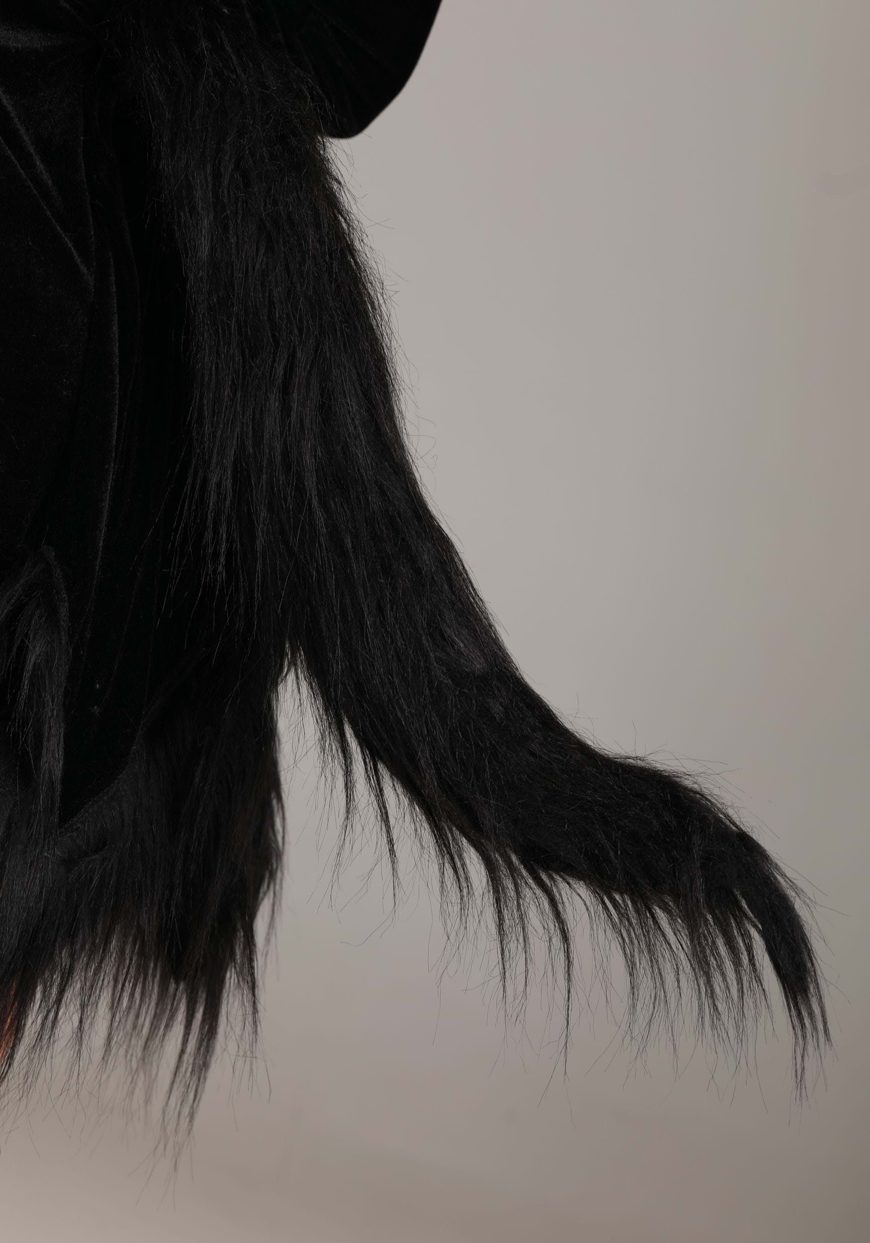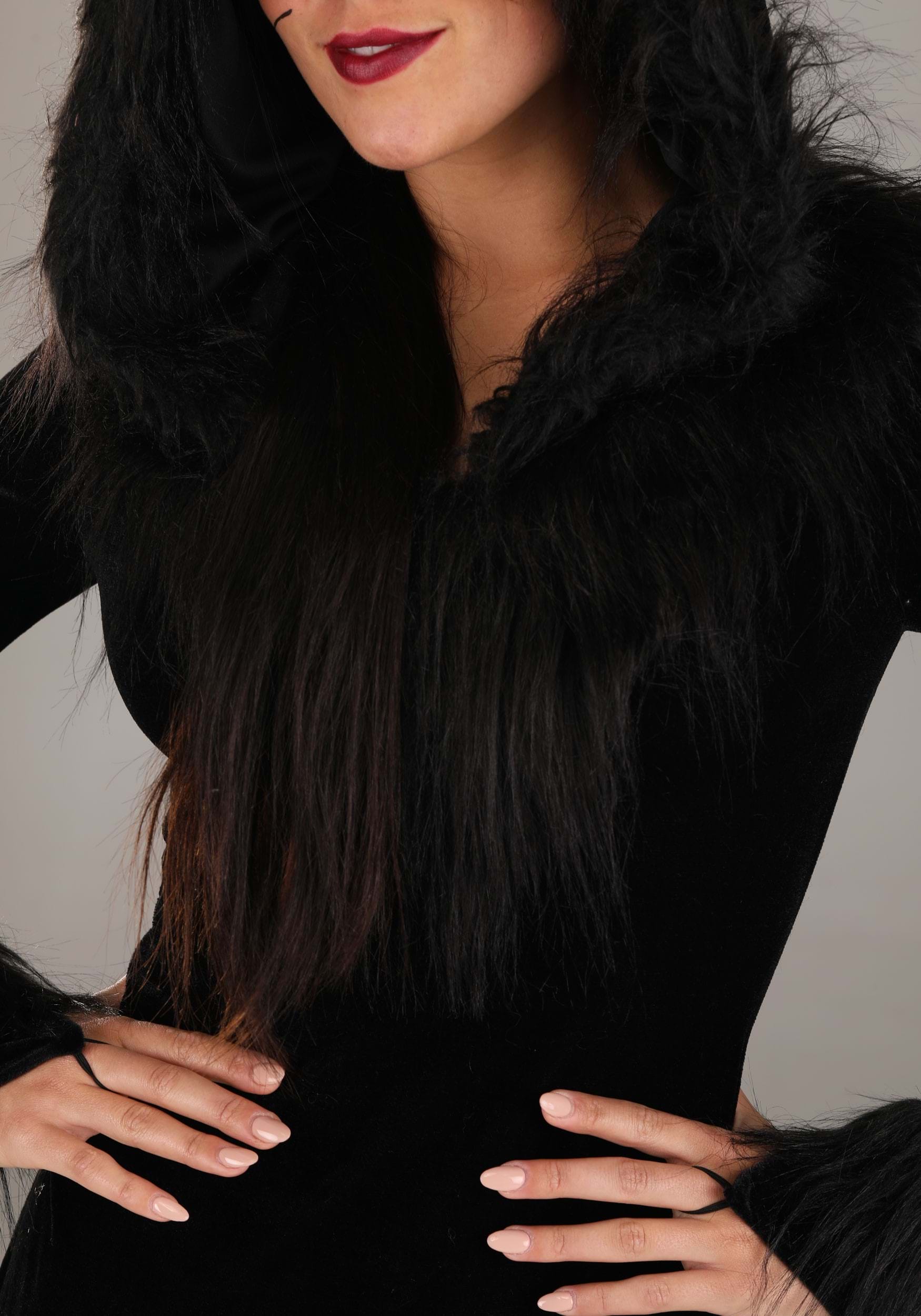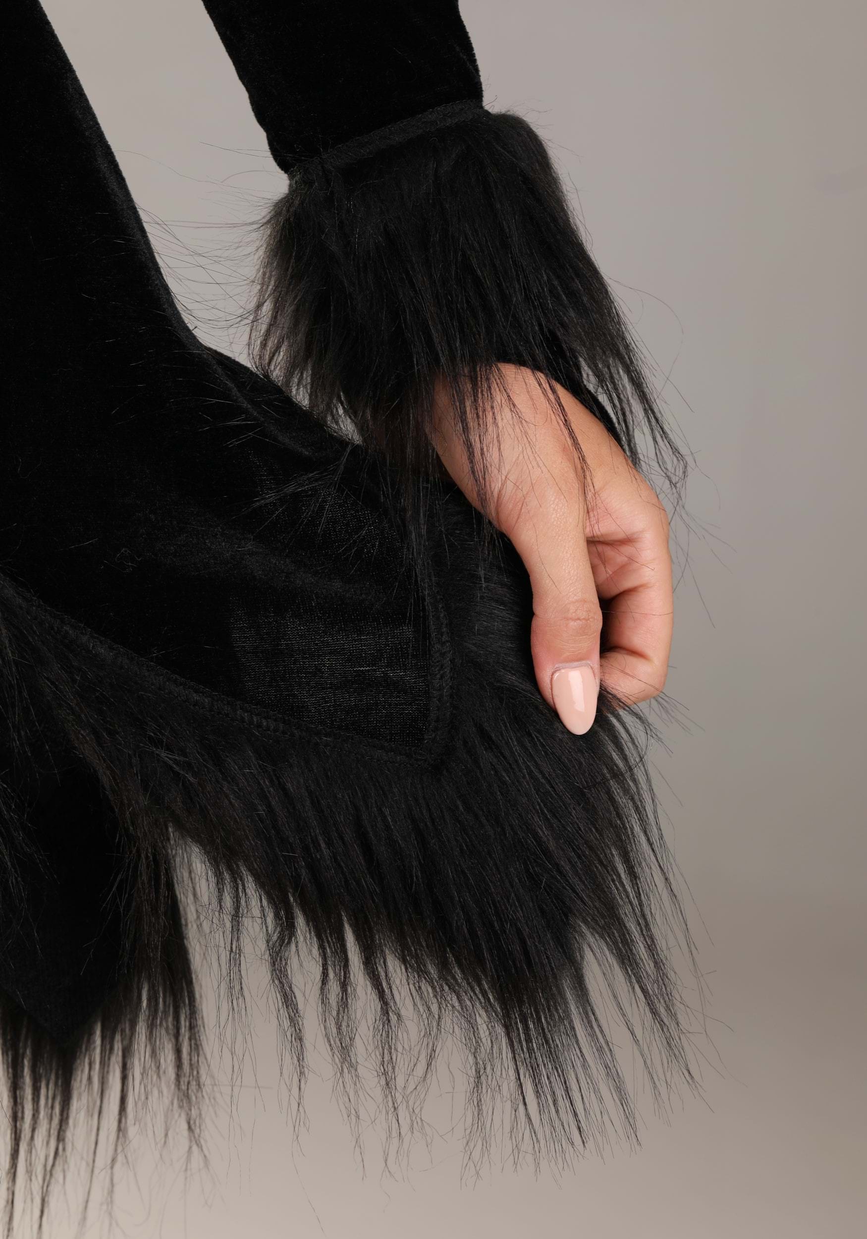 - Faux fur tail sewn to back of dress, faux fur ears on top of hood