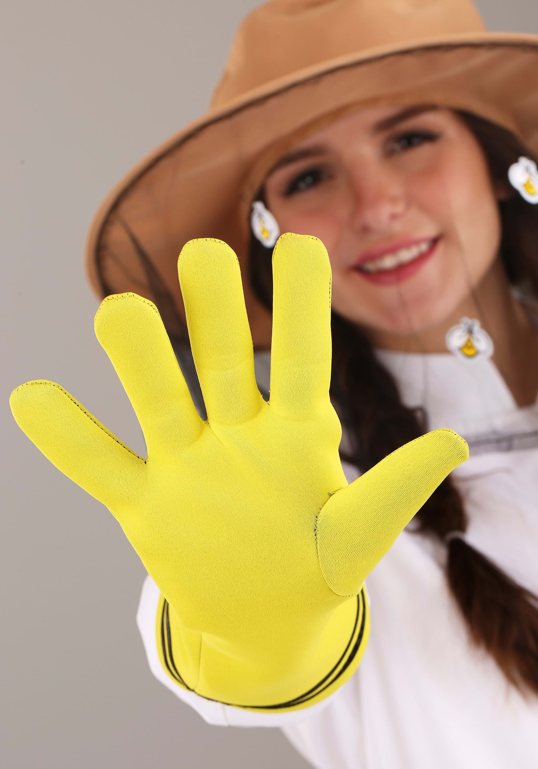 - Foam-backed gloves have satin ribbon trim at cuffs