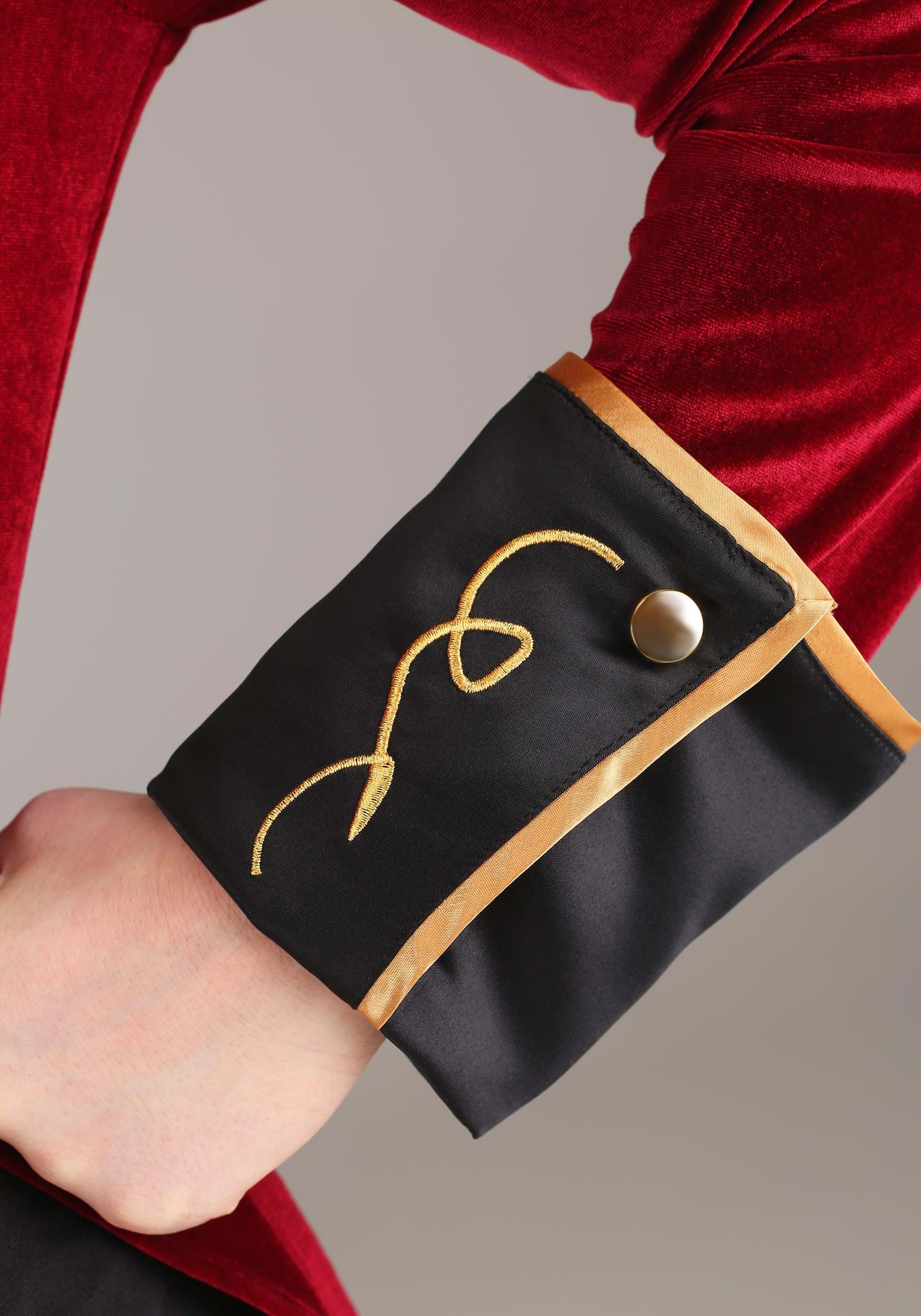 - Velvet cutaway tailcoat jacket has embroidered satin collar, lapels, and sleeve cuffs