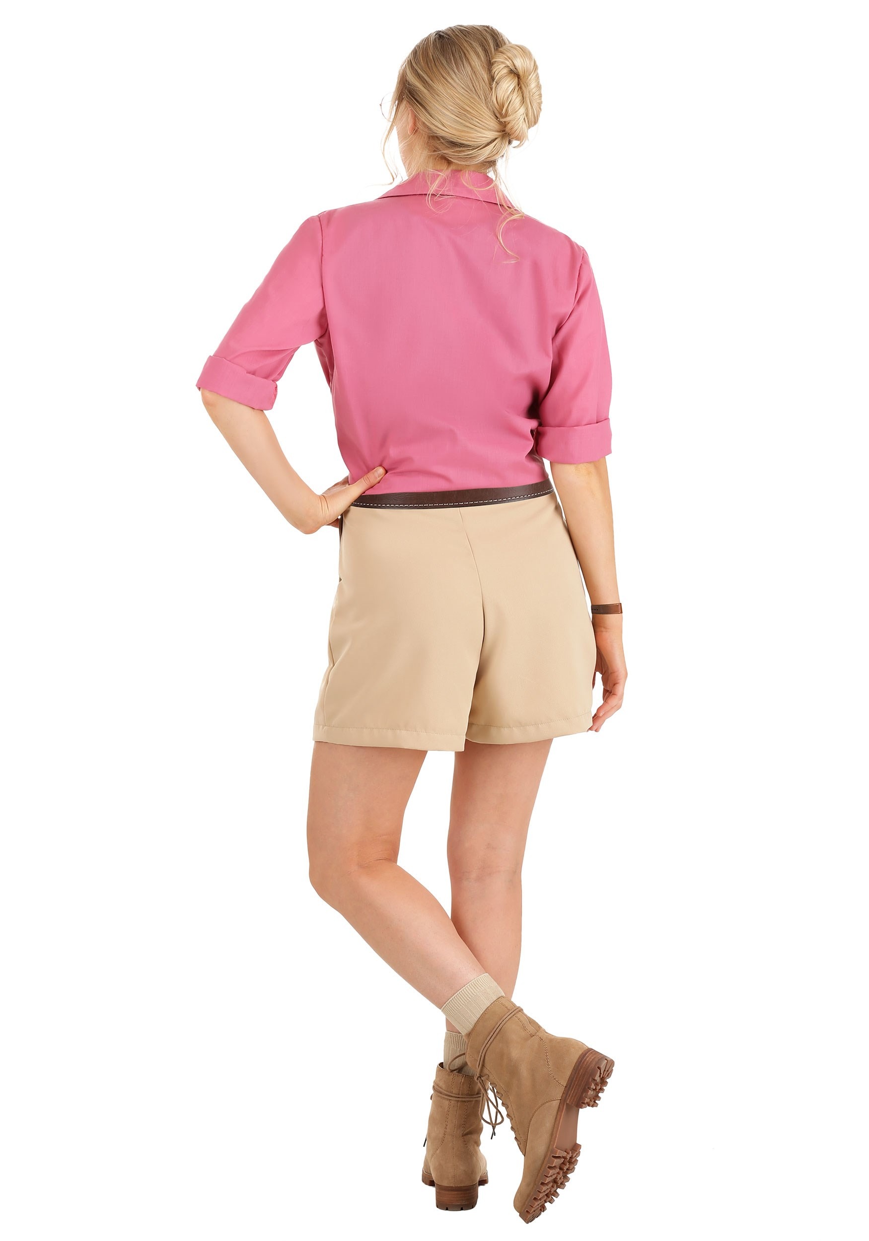 Our exclusive Ellie Sattler costume comes straight from the original Jurassic Park film. Designed for the explorer at heart, this costume pairs a light blue, stretch knit tank top with cuffed khaki shorts. The pink camp shirt adds a splash of color to your expedition gear, complete with center-front buttons.