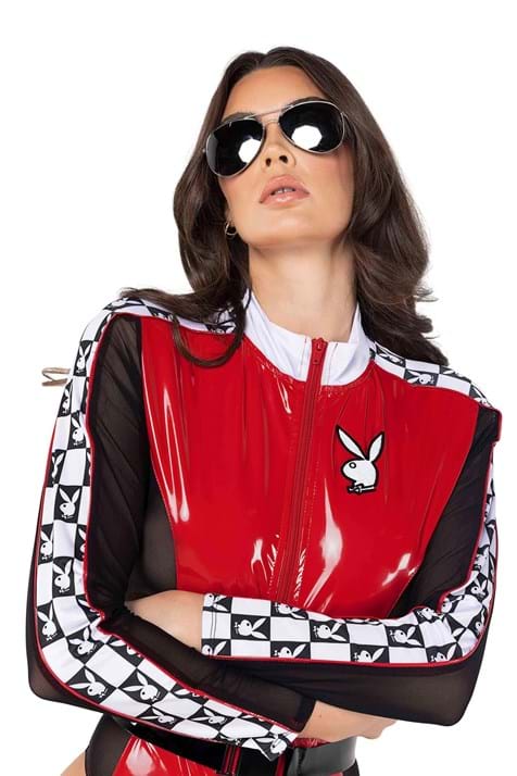 This is a Women's Playboy Race Car Driver Plus Size Costume.