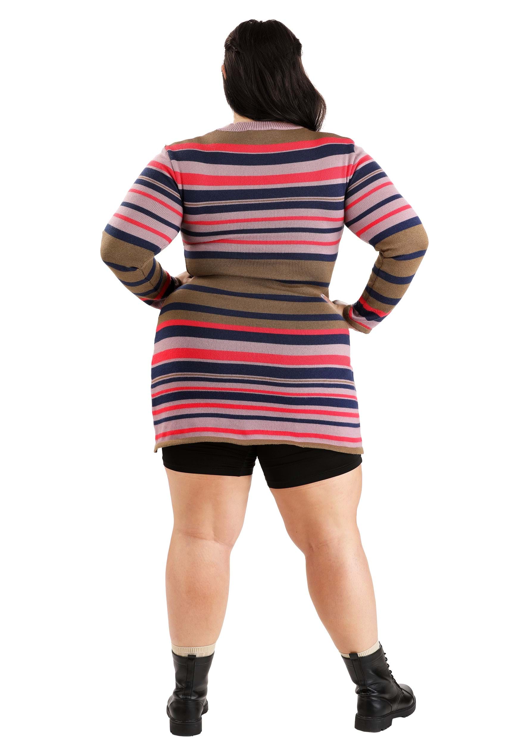 This is an exclusive Women's Plus Size Astrid Striped Distressed Sweater Dress.