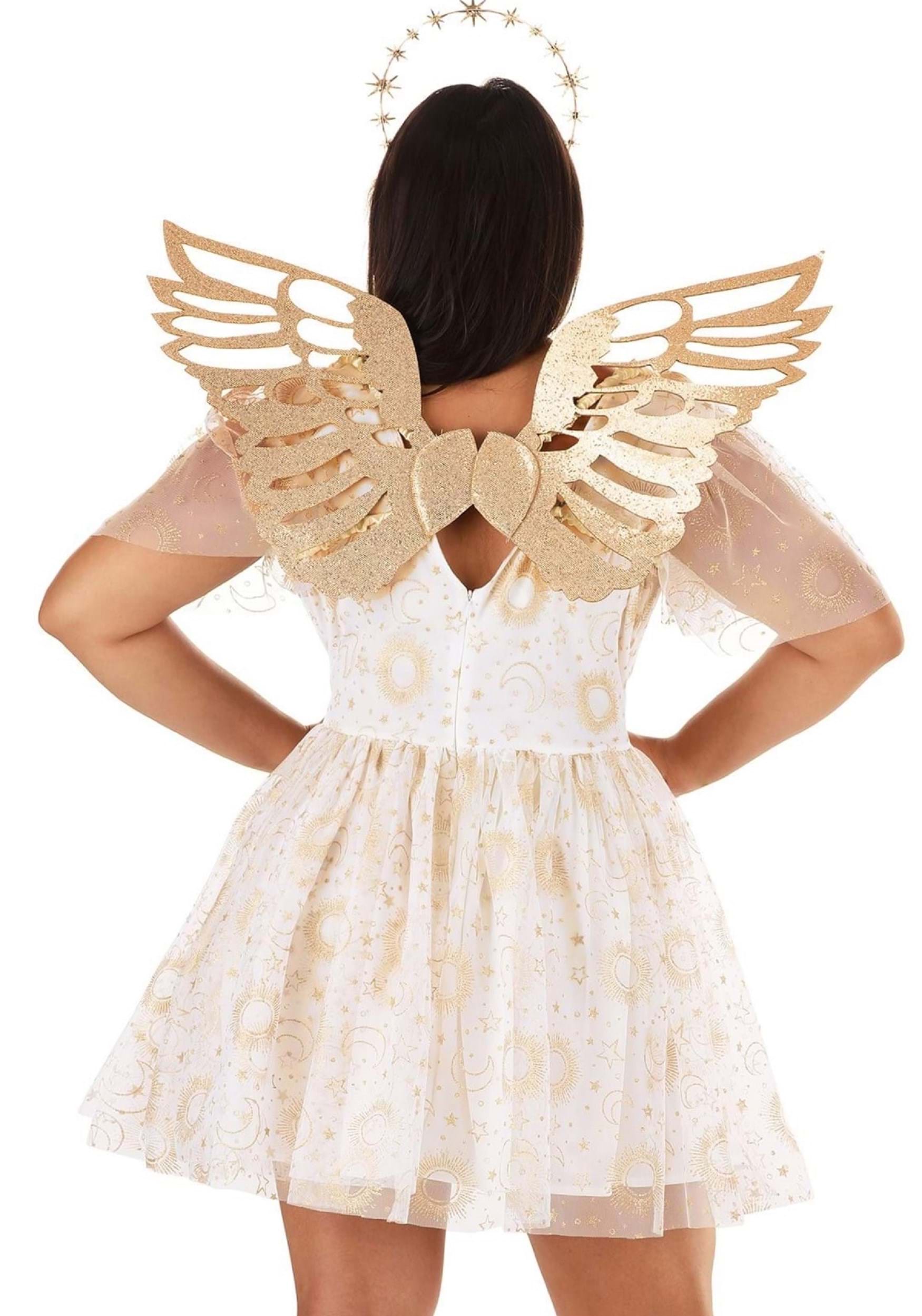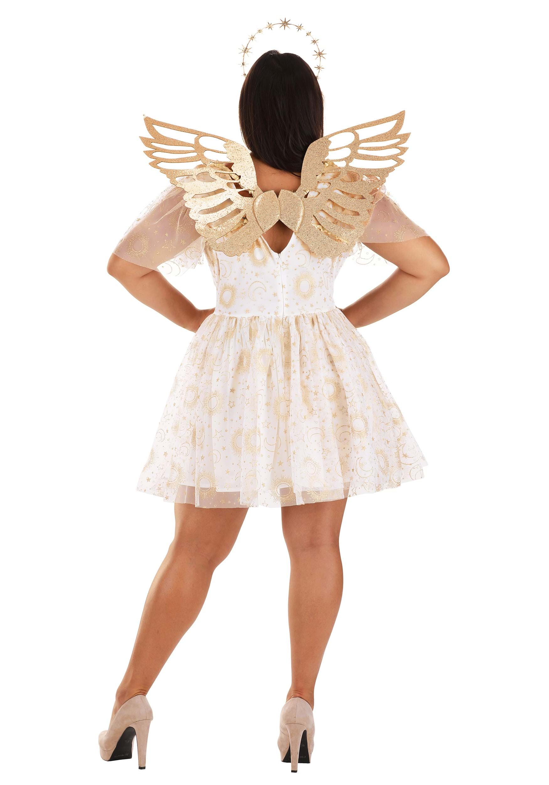 This is an exclusive Women's Plus Size Gold Starburst Angel Costume.