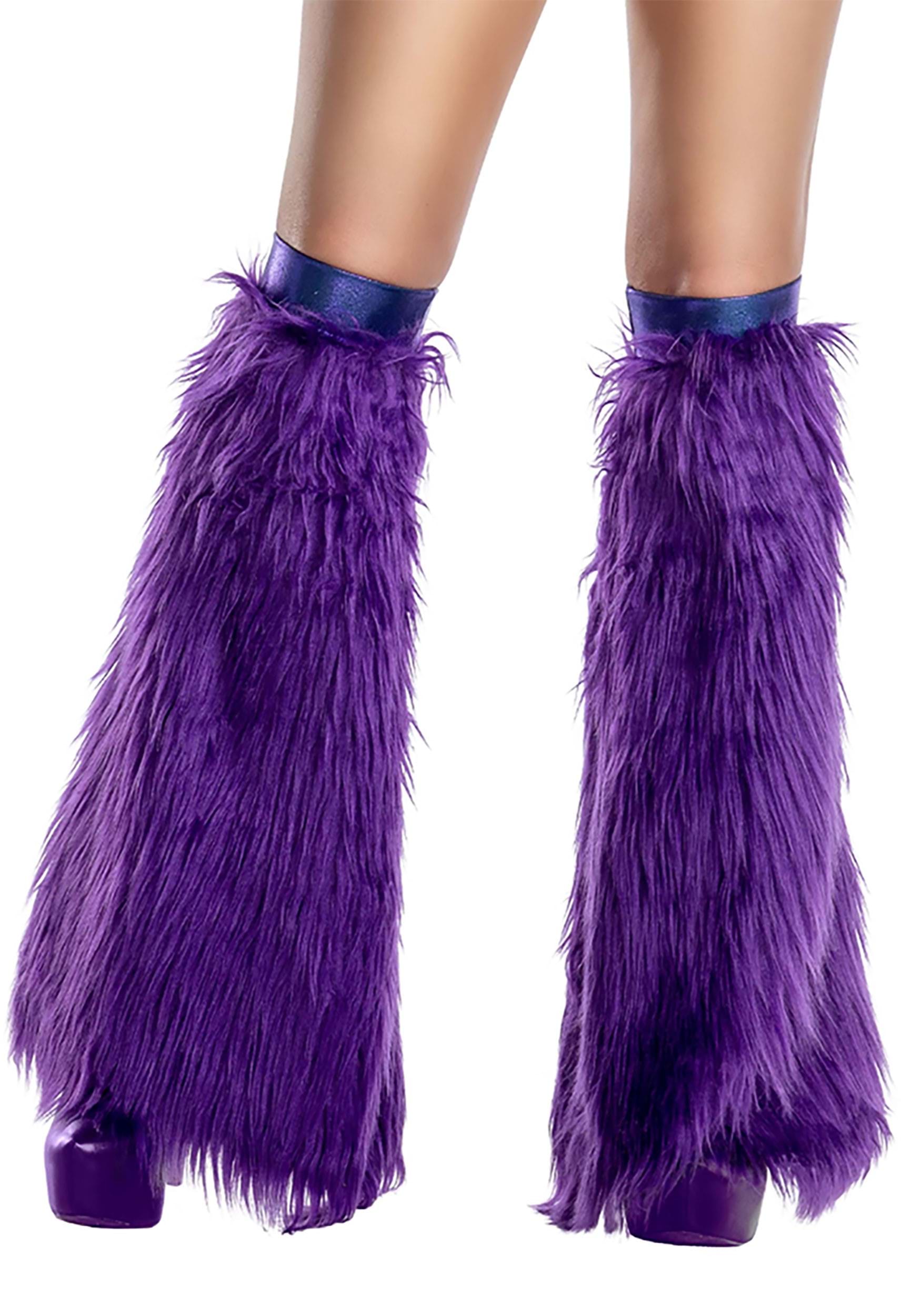 - Faux fur leg warmers have elastic on top and flare out on bottom