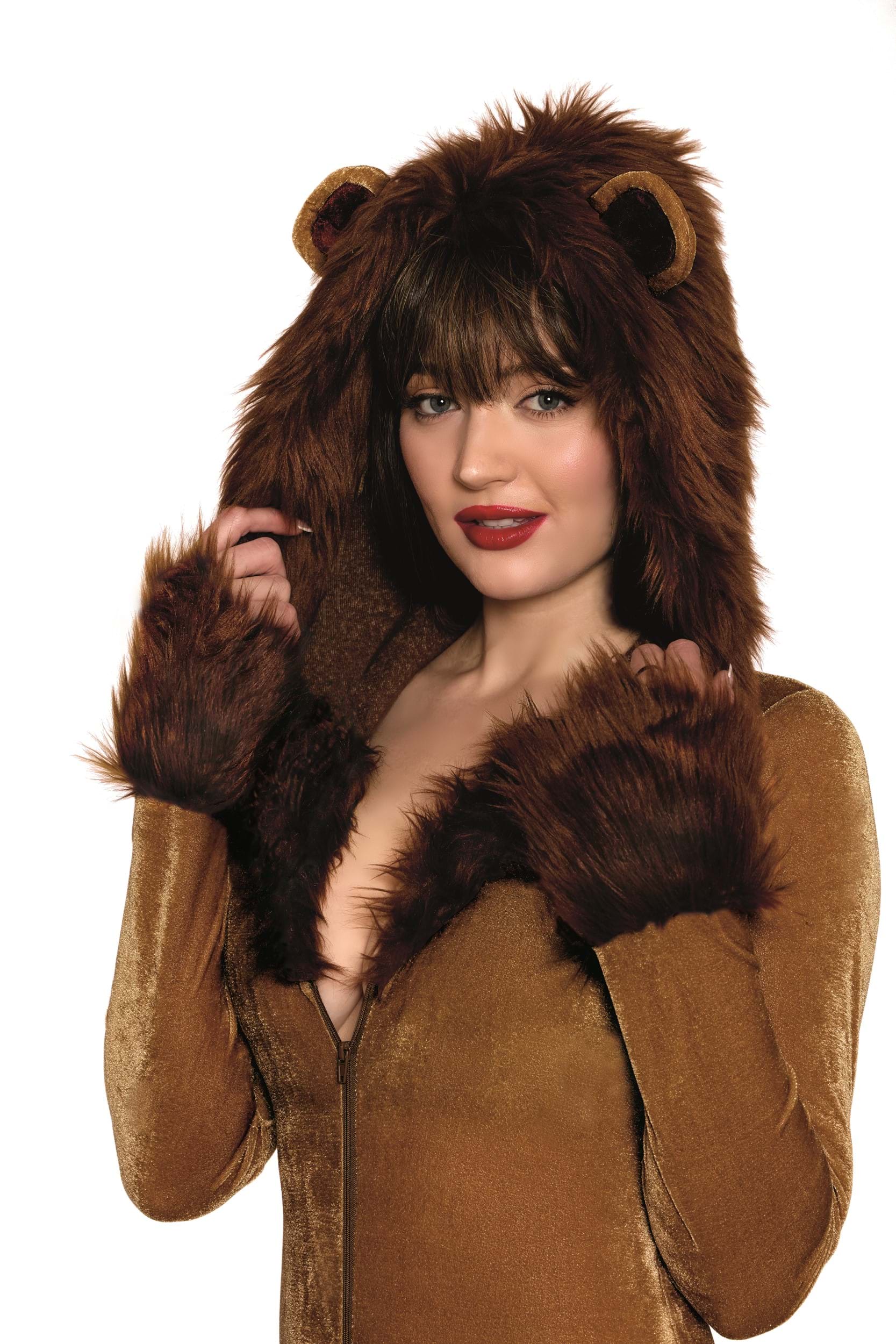 - Attached hood has faux fur and foam backed velvet ears sewn on the top