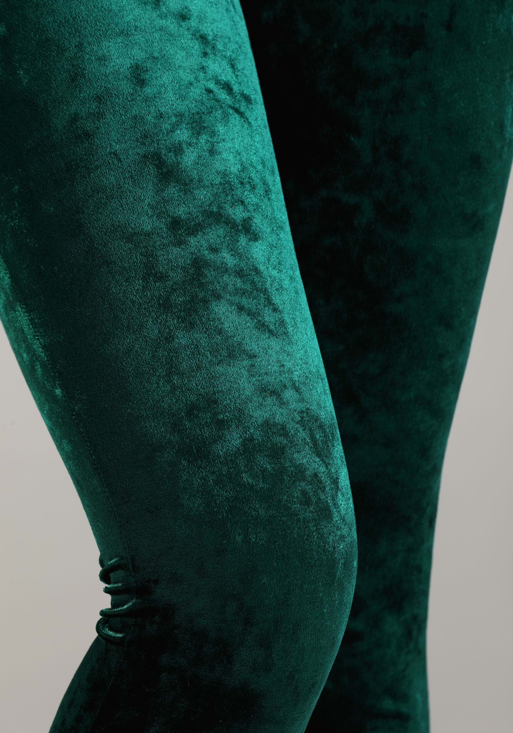 - Stretchy crushed green velvet body and legs of jumpsuit