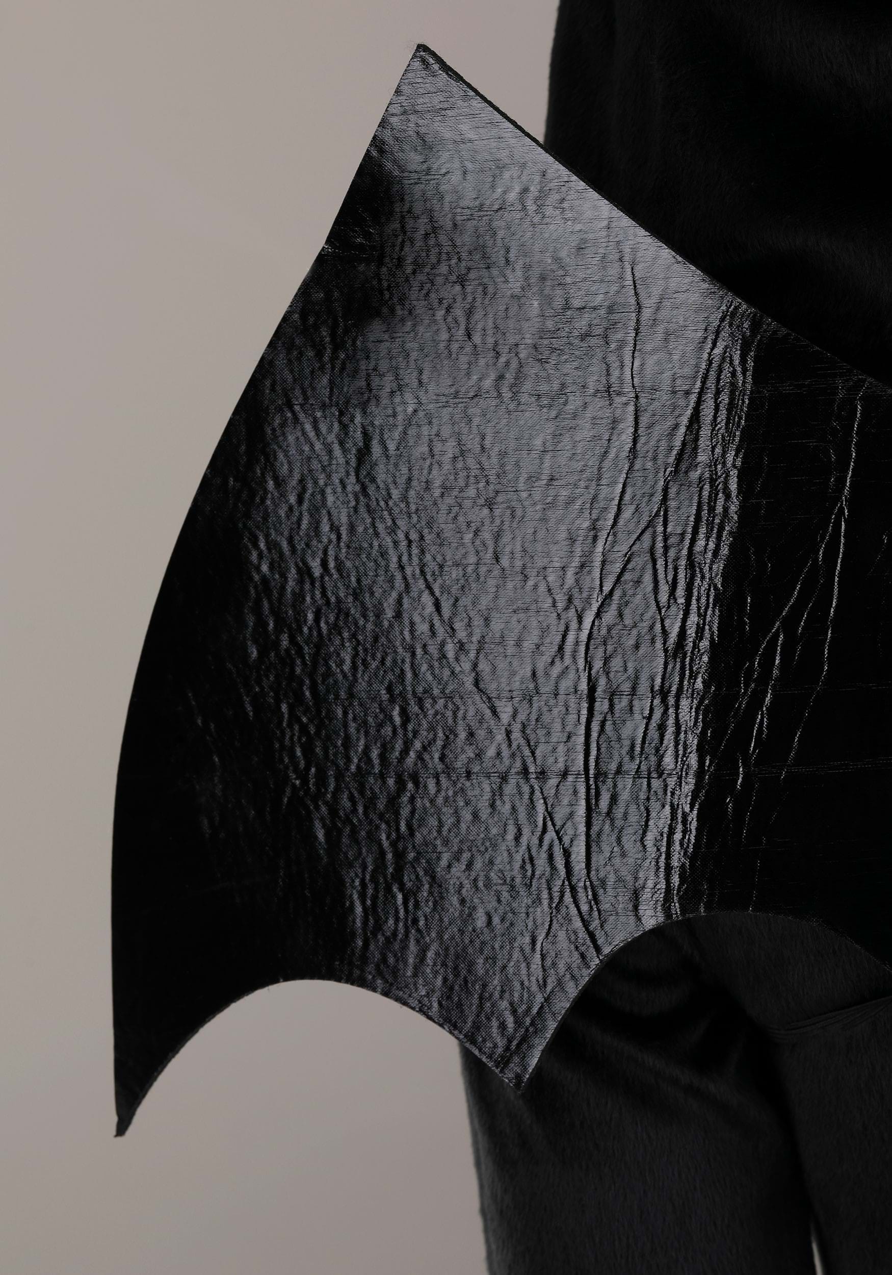 - Shiny felt-backed faux leather wings have elastic shoulder straps