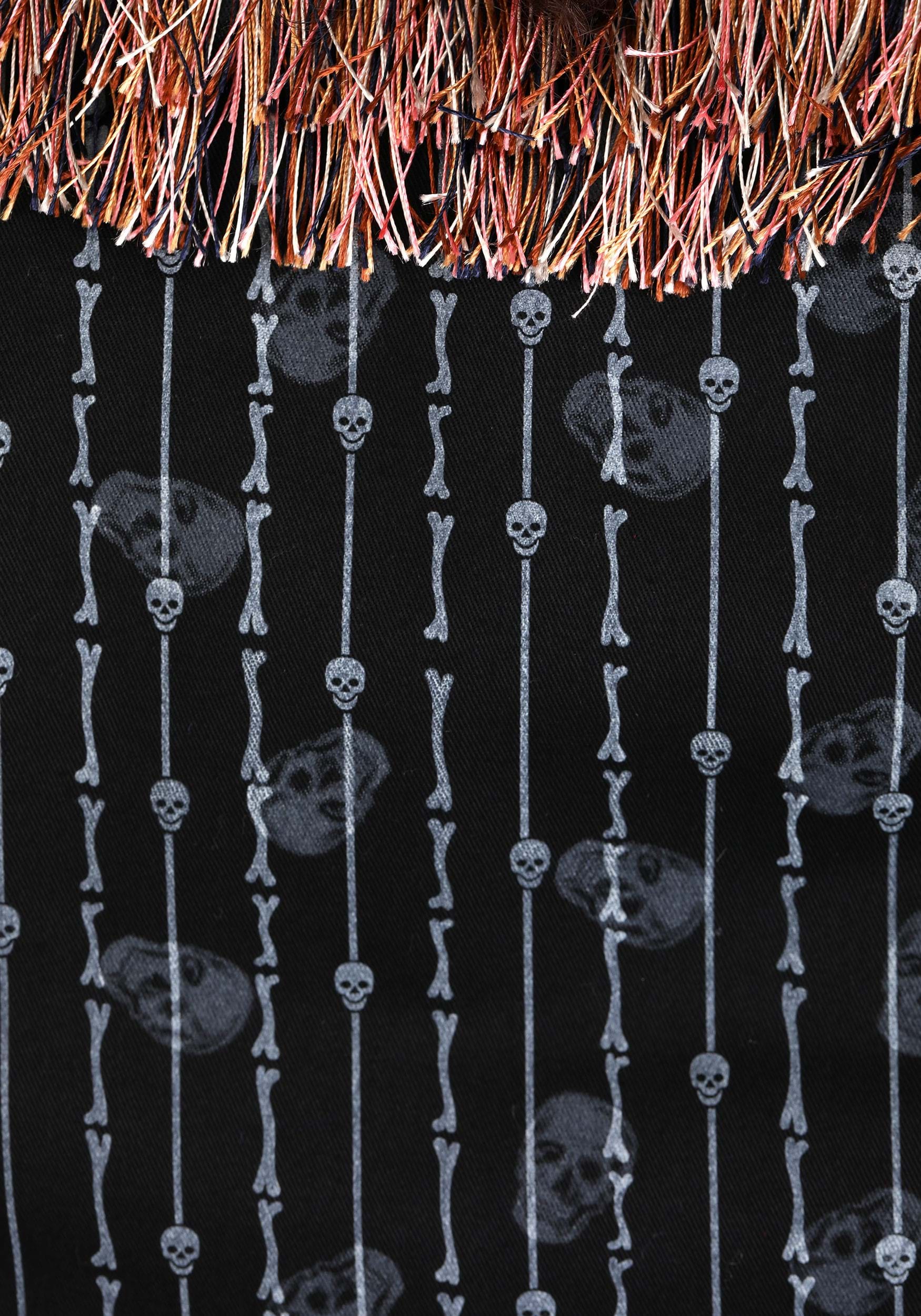 - Skull patterned jacket with fringe along the collar and lapels and skull front closure