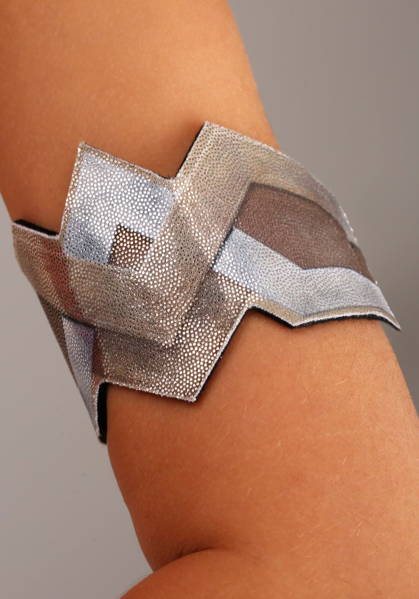 - Headpiece and arm band have elastic bands to secure around head and arm