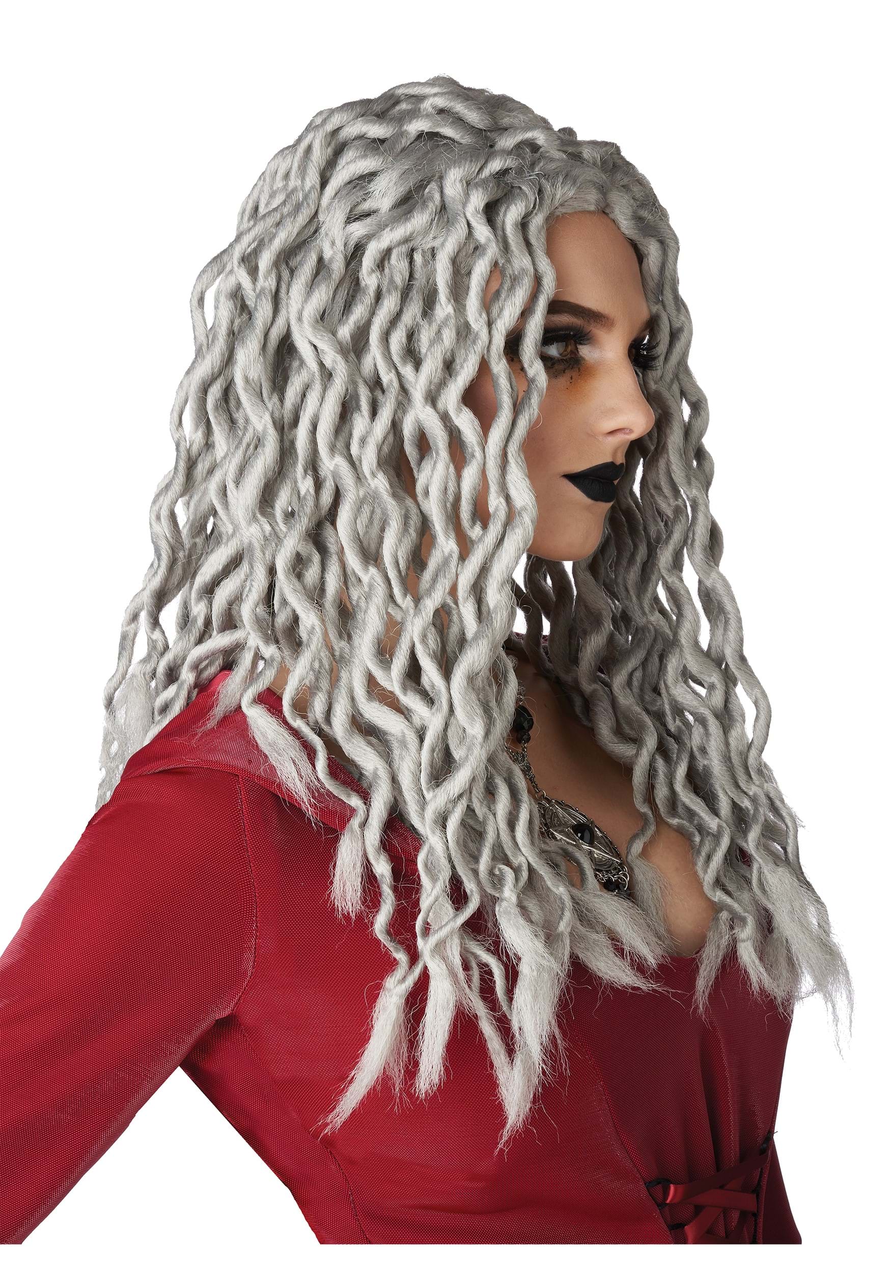 Give your costume a crowning touch this Halloween with this Women's Gray Crinkle Dreads Costume Wig! The beautiful, silvery faux-hair dreadlocks cascade from a mesh wig cap all the way to the middle of your back. No need for time-consuming hairdressing: The wig is artfully styled so you can say with complete honesty, "Oh, I woke up like this!"